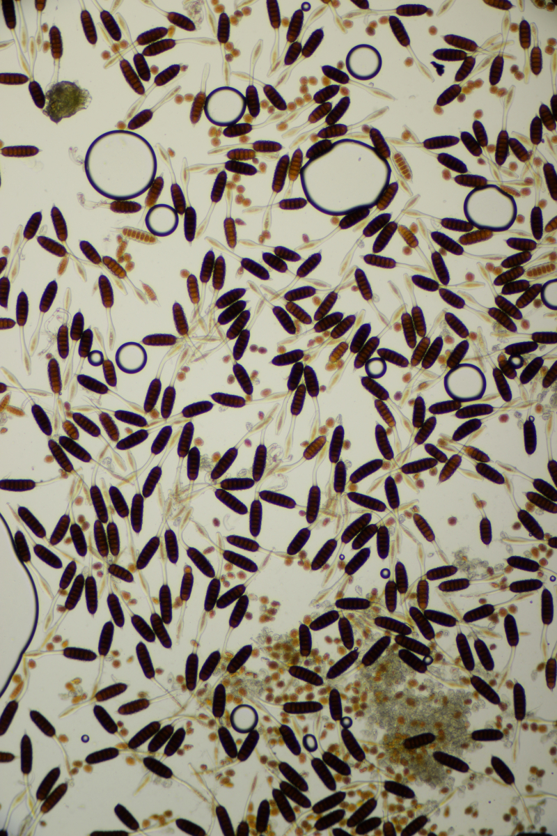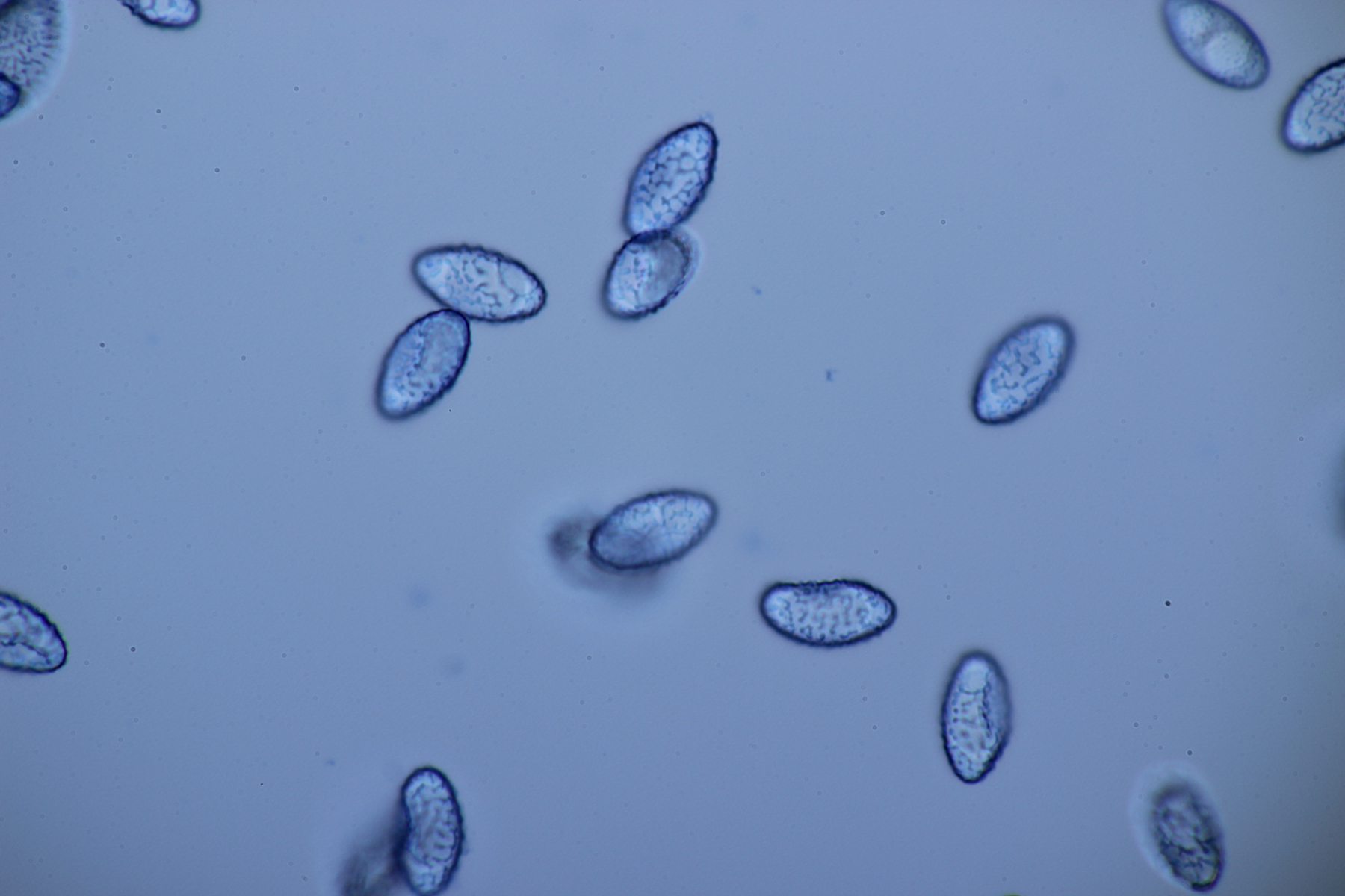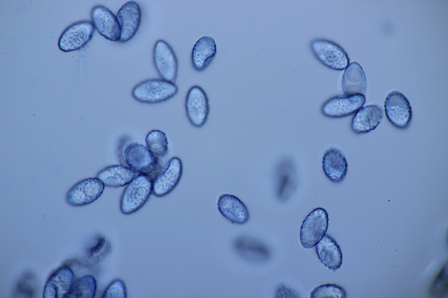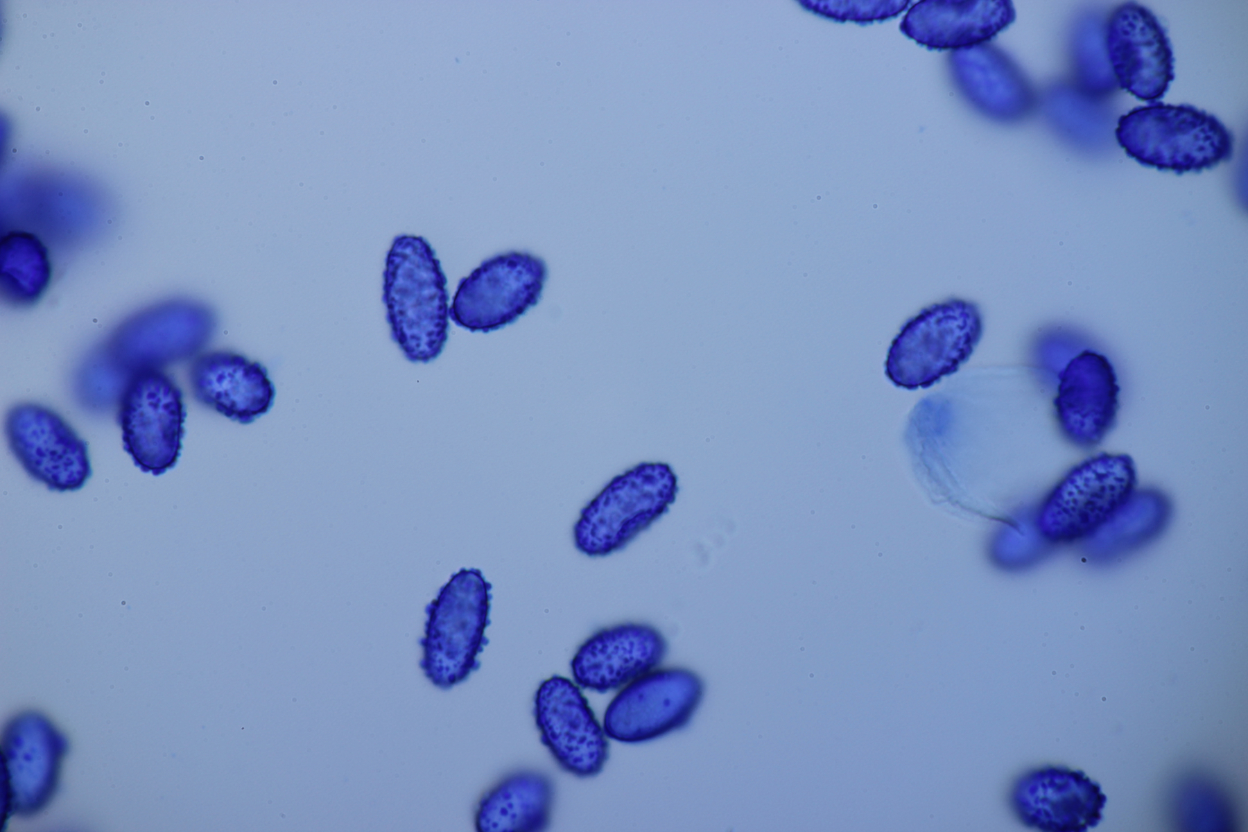 Sporengröße (20.8+-0.7) µm x (12.6+-0.5) µm oder alternativ (19.4-21.7) µm x (11.7-13.7) µm