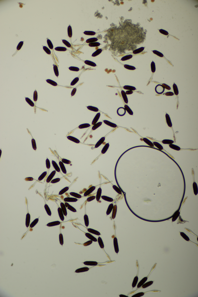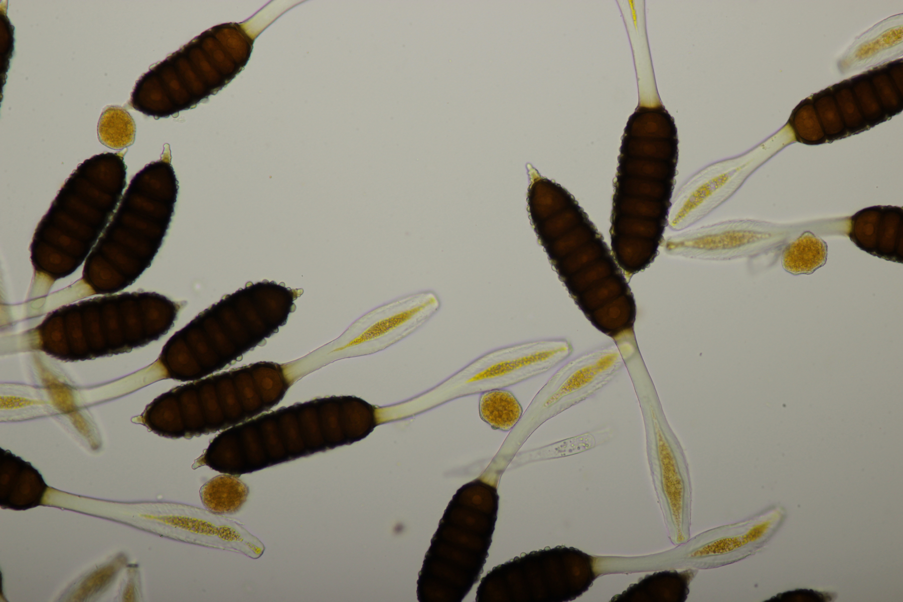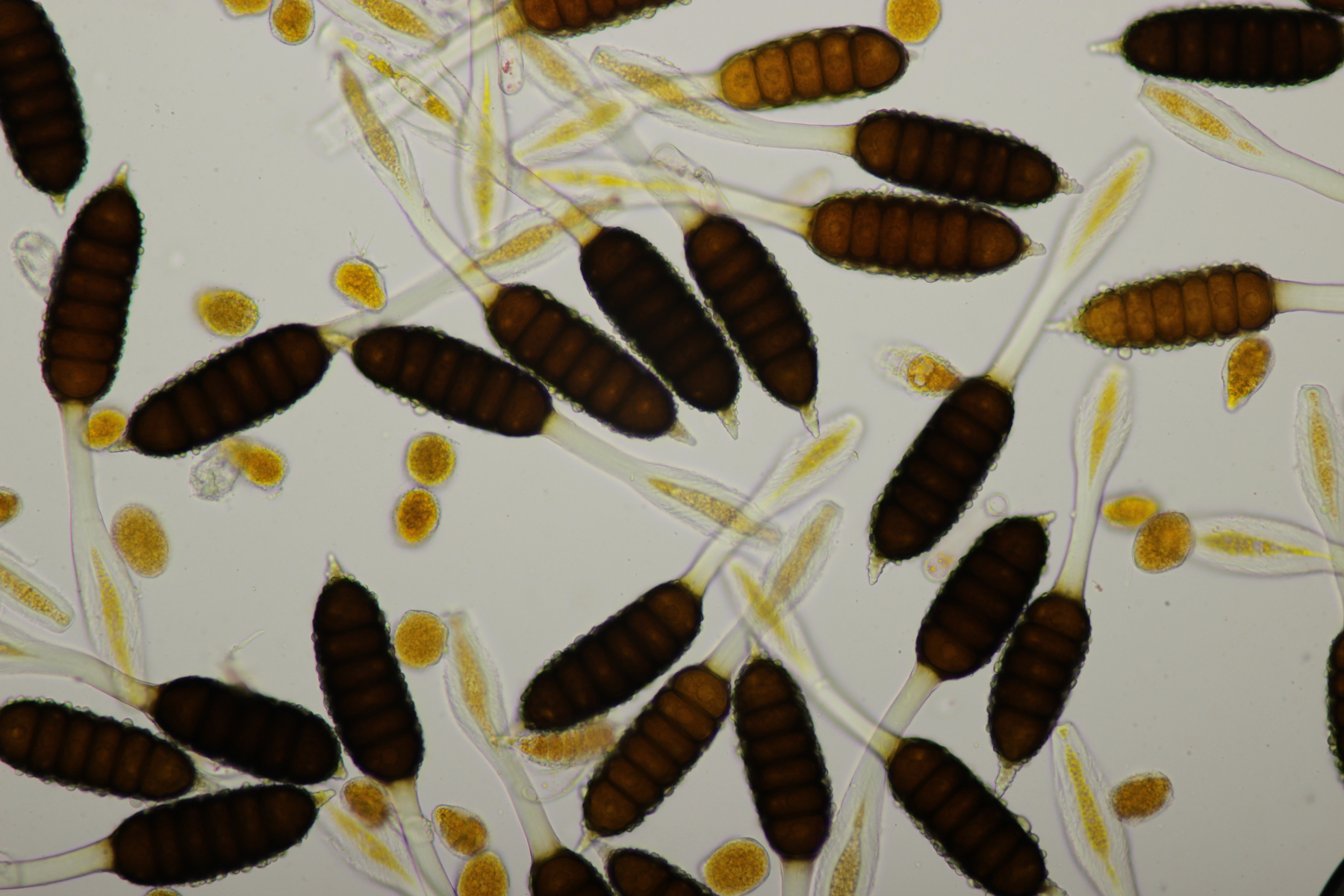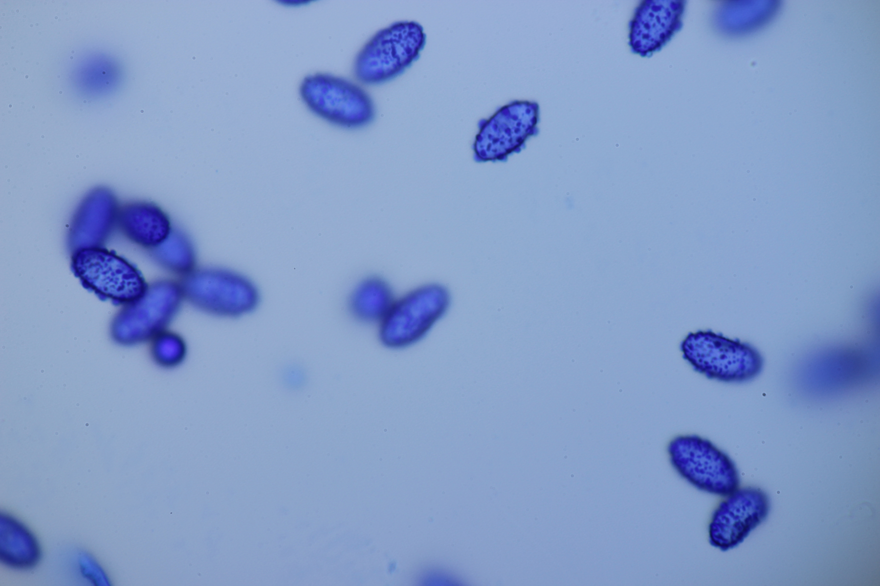 Sporengröße (20.8+-0.7) µm x (12.6+-0.5) µm oder alternativ (19.4-21.7) µm x (11.7-13.7) µm