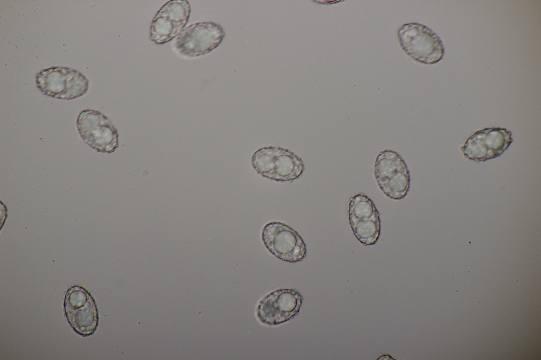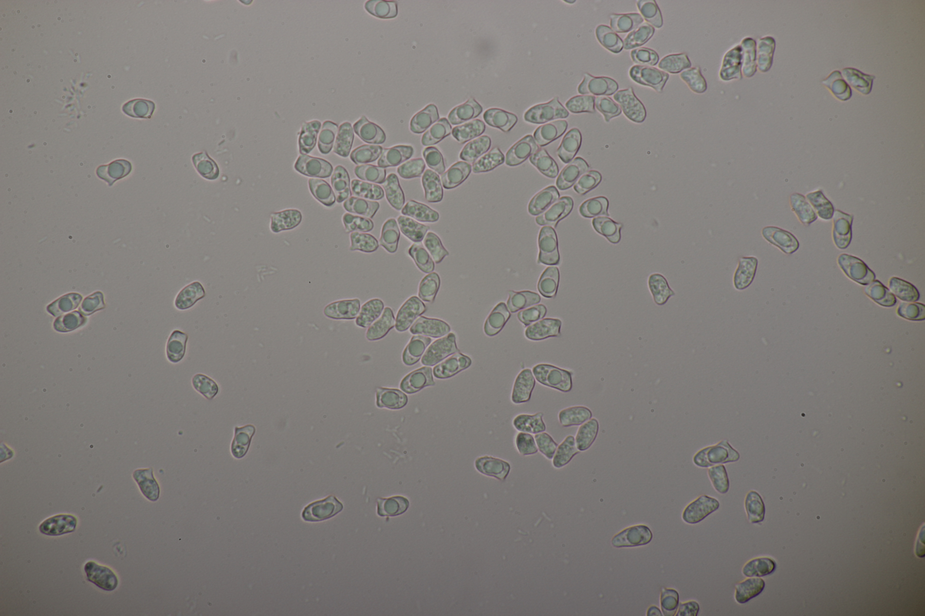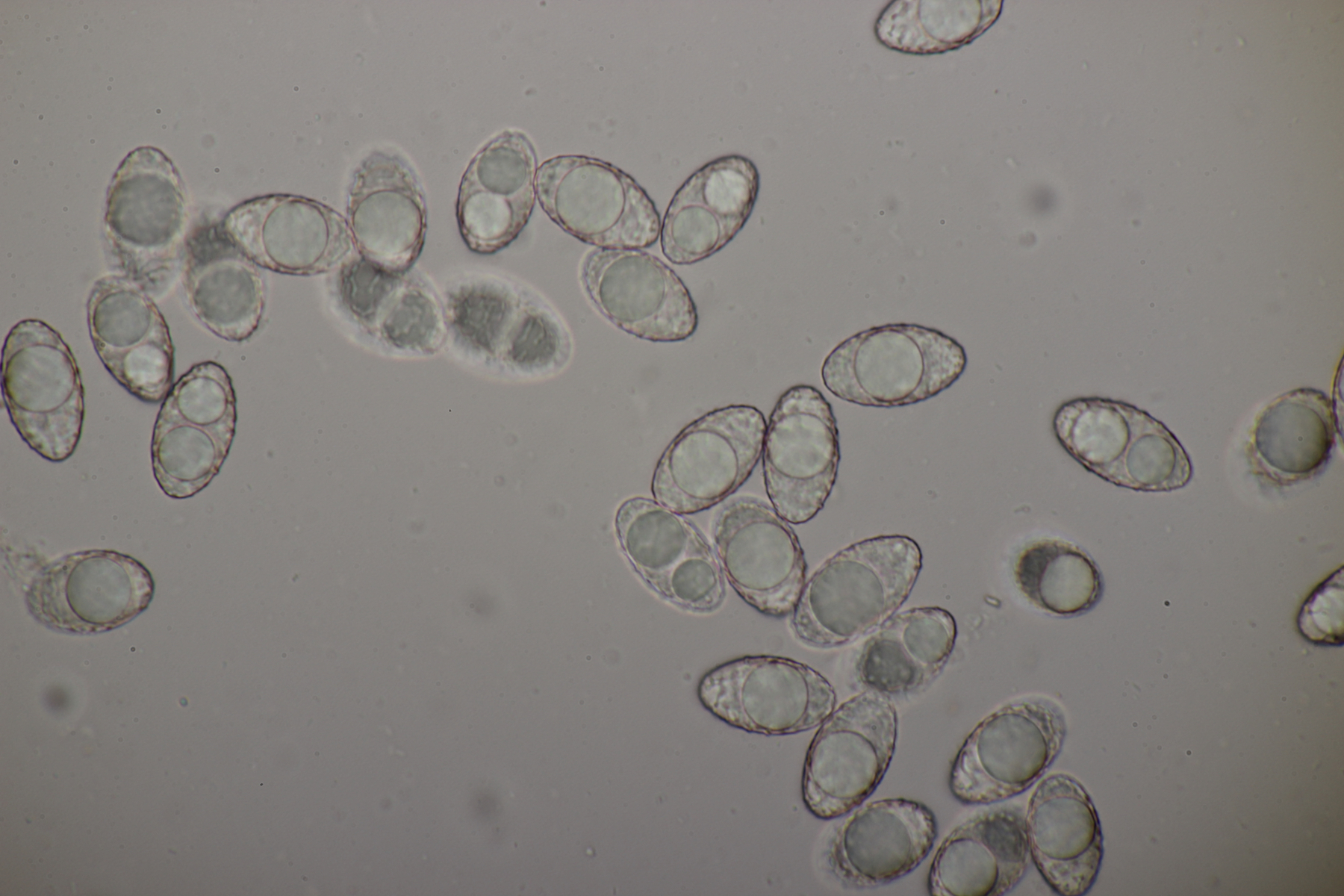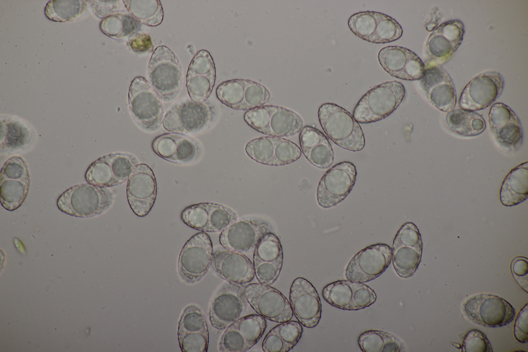Sporengröße (23.3+-1.1) µm x (13.0+-0.5) µm, bzw. alternativ ausgedrückt (21.4-25.1) µm x (12.5-14.3) µm