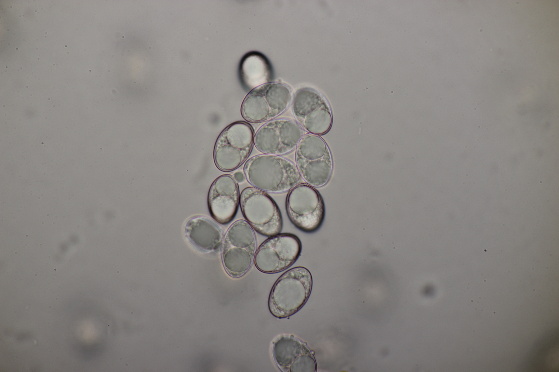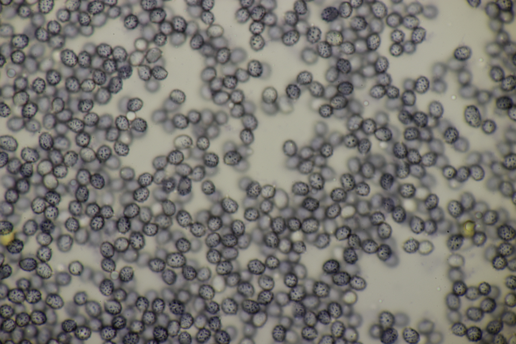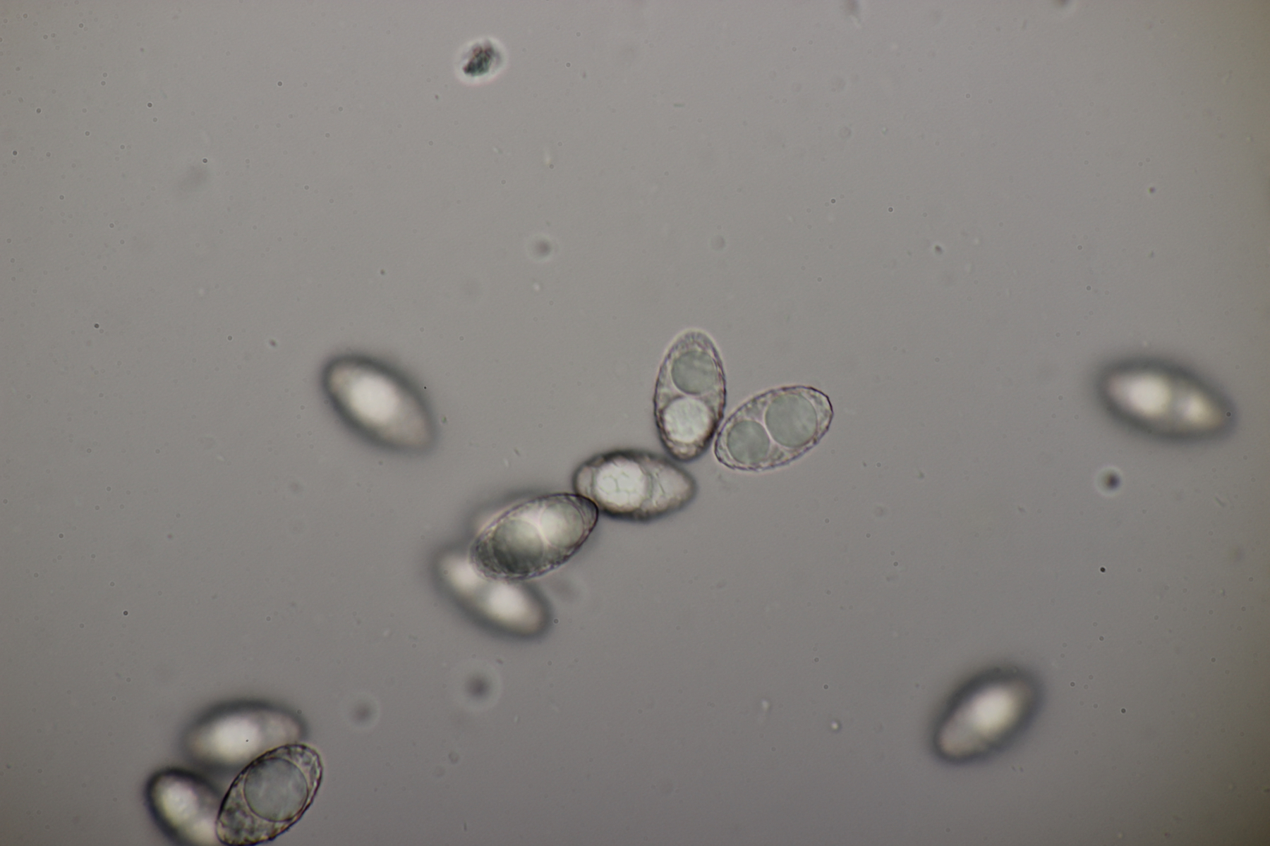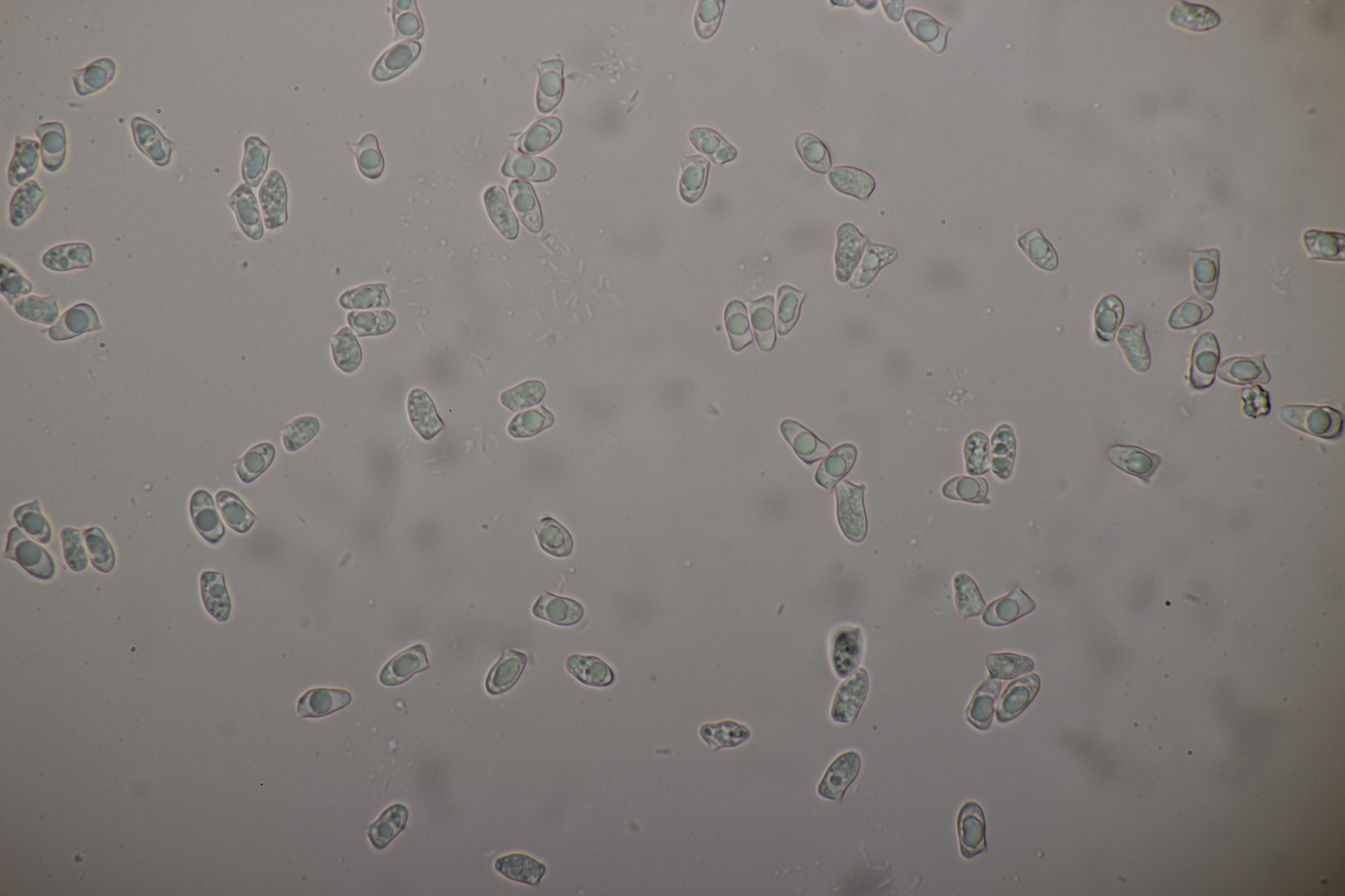 Sporengröße (23.3+-1.1) µm x (13.0+-0.5) µm, bzw. alternativ ausgedrückt (21.4-25.1) µm x (12.5-14.3) µm