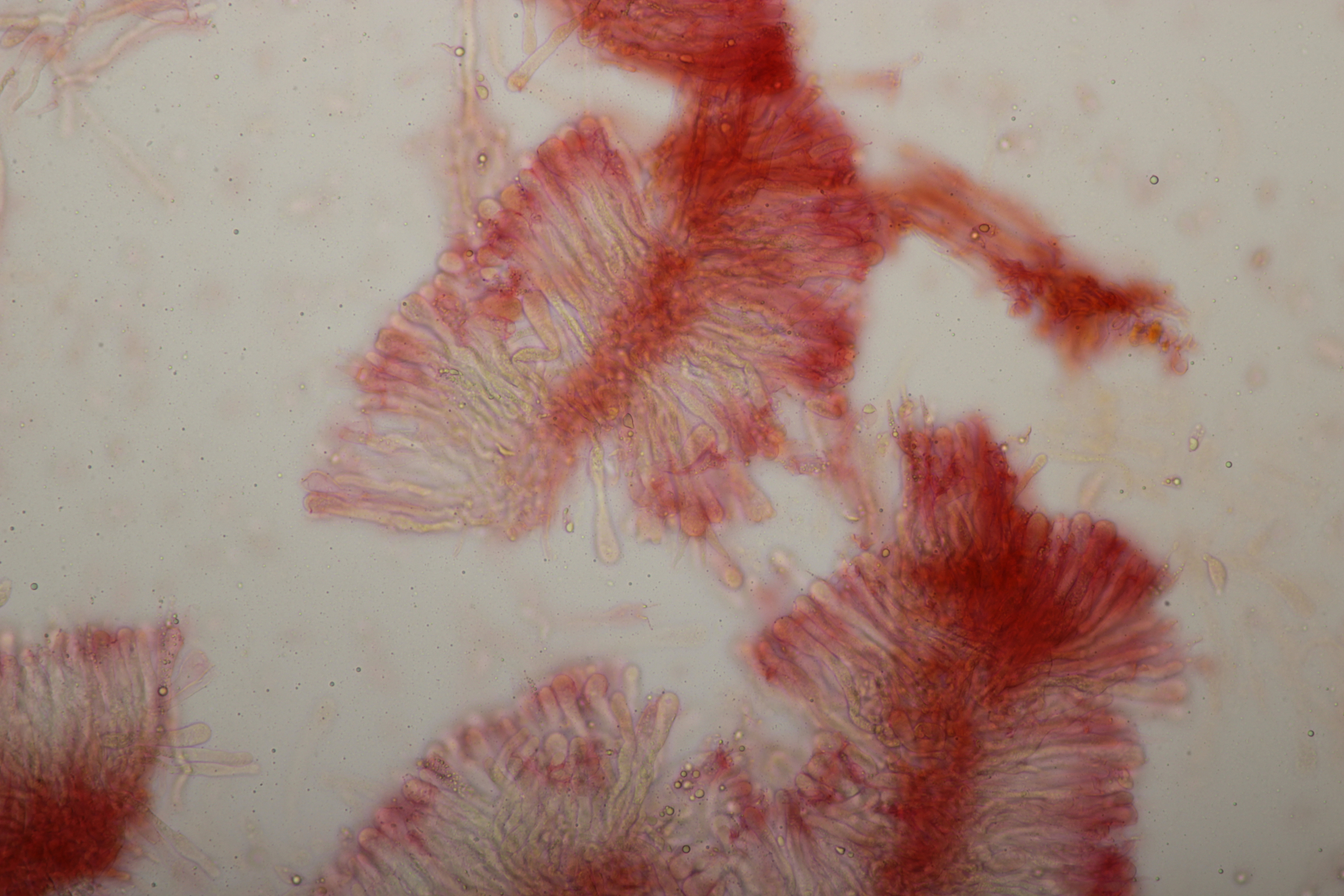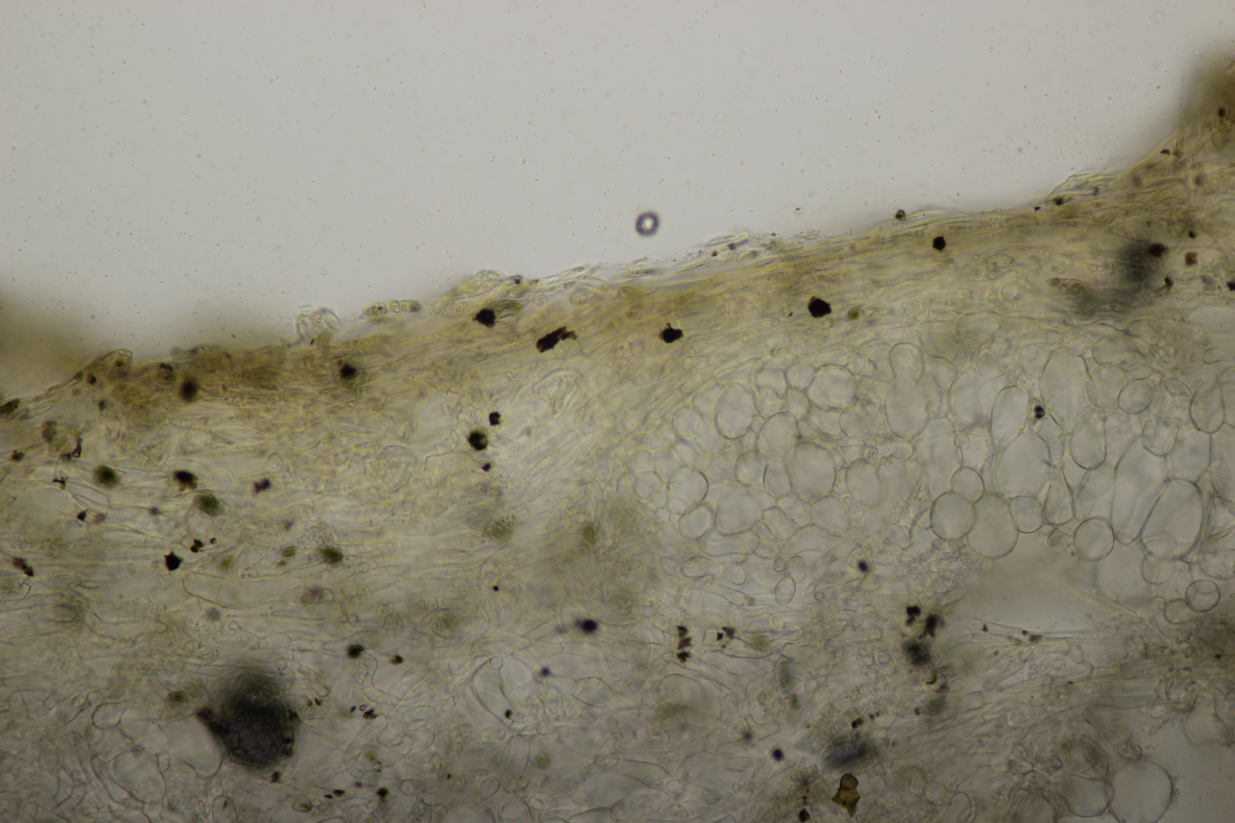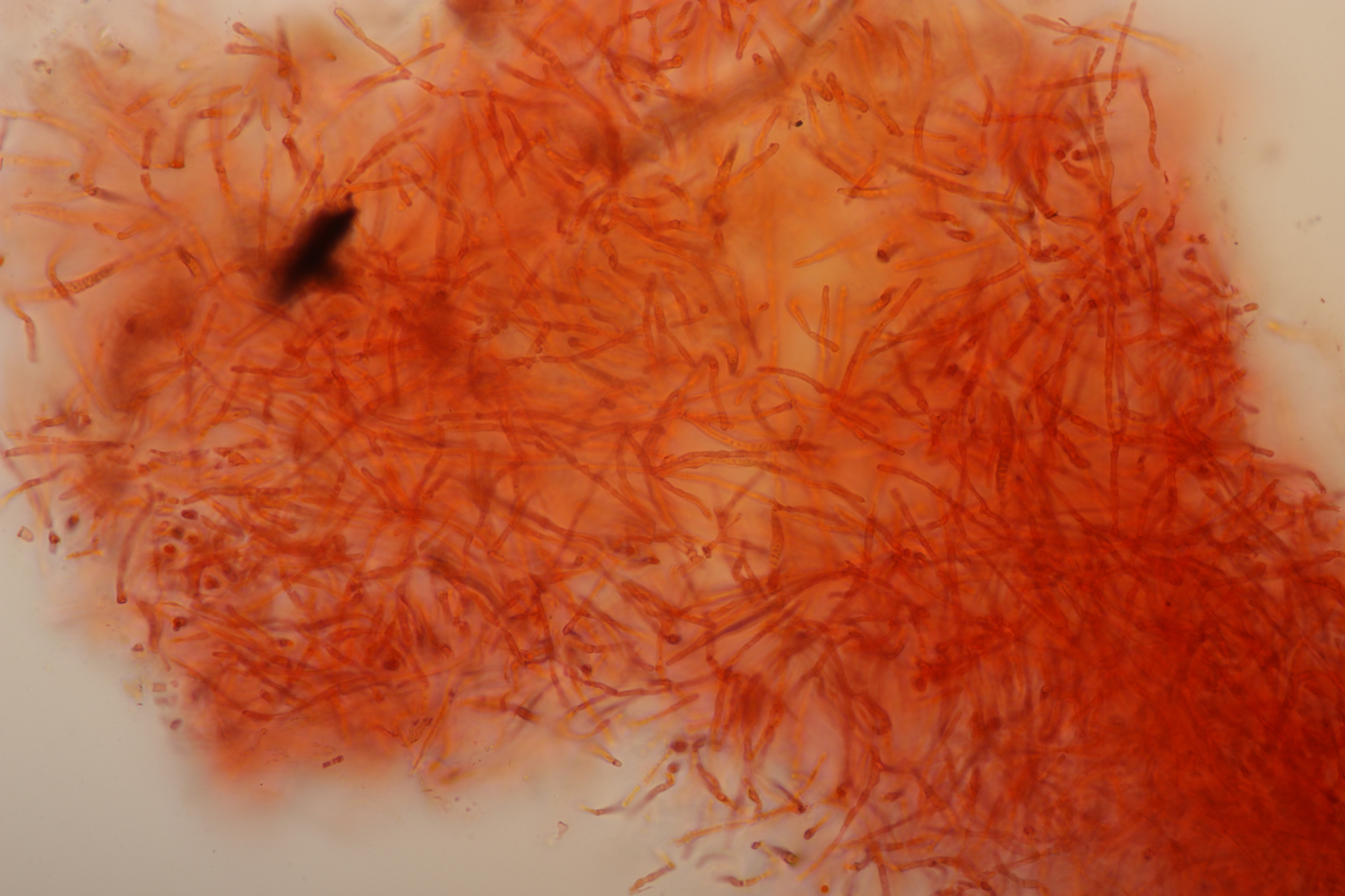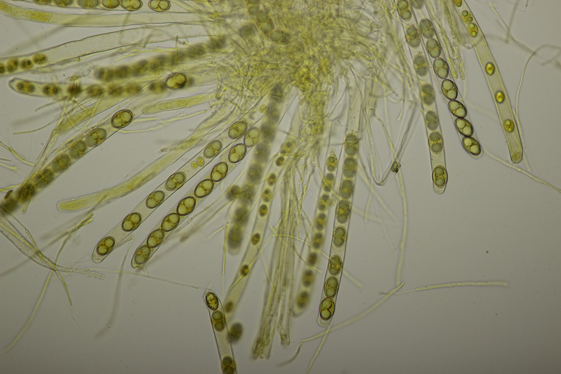 Hier sieht man sehr schön, wie die Konidienträger aus den Spaltöffnungen wachsen