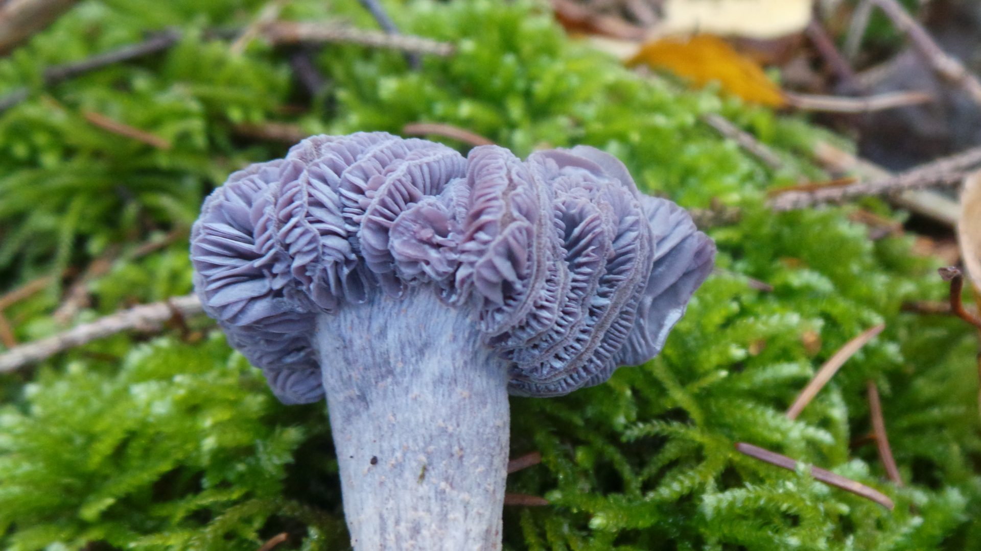 Lila Überraschung direkt danach: Dunkelvioletter Schleierling (Cortinarius violaceus).