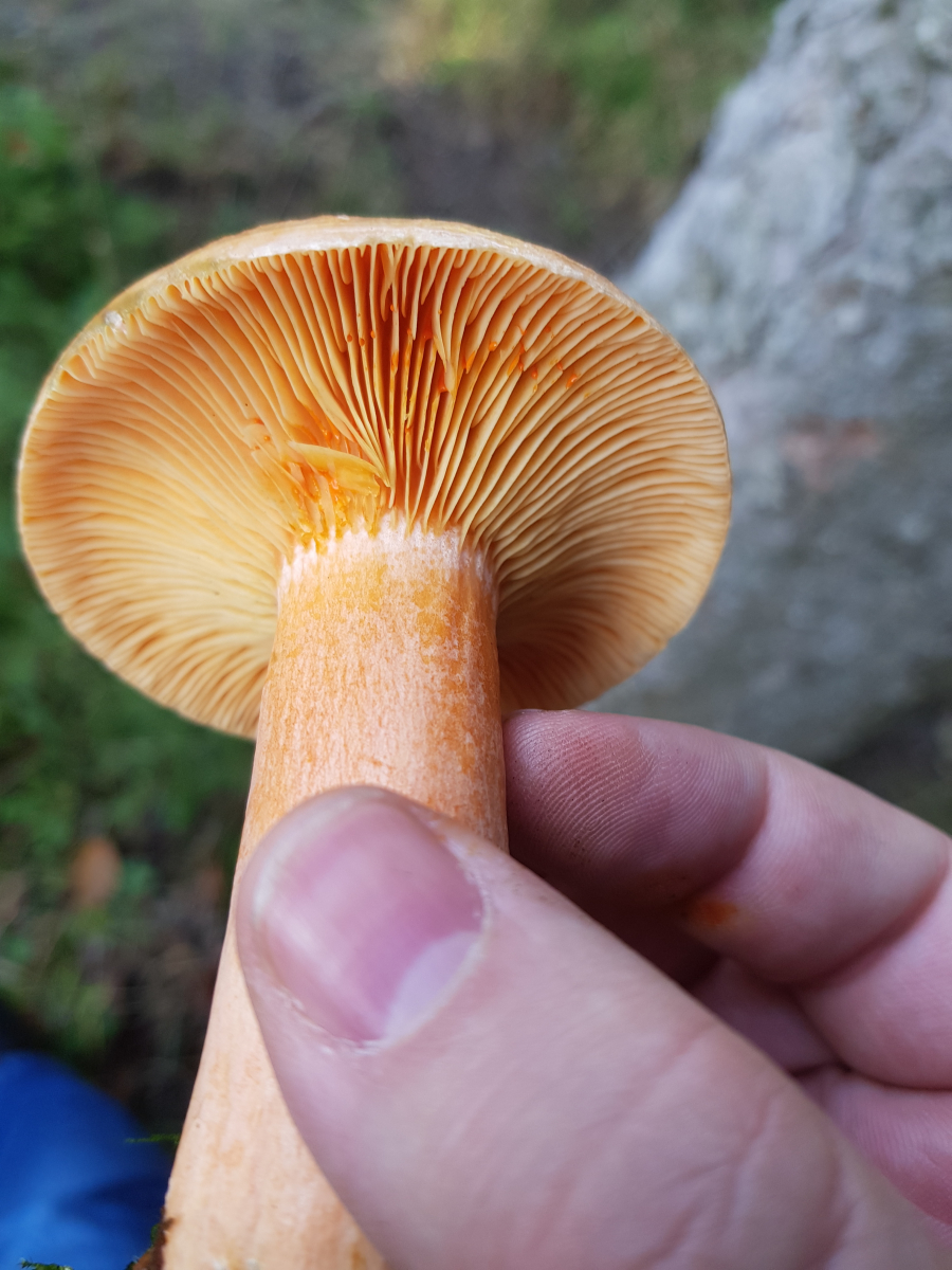 Sollte ein Fichtenreizker sein. Aber das Exemplar ist riesig. Ich würde sagen 15cm Durchmesser. Die älteren benachbarten waren auch ähnlich groß. Ich habe mich gefragt, ob man so ein Exemplar vielleicht sogar noch ernten könnte...