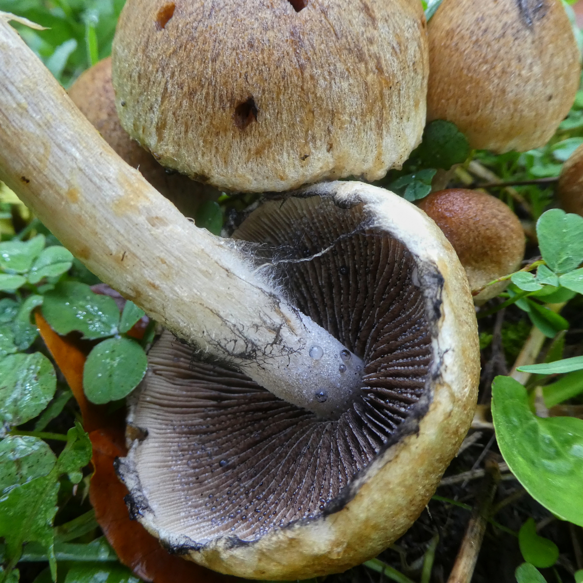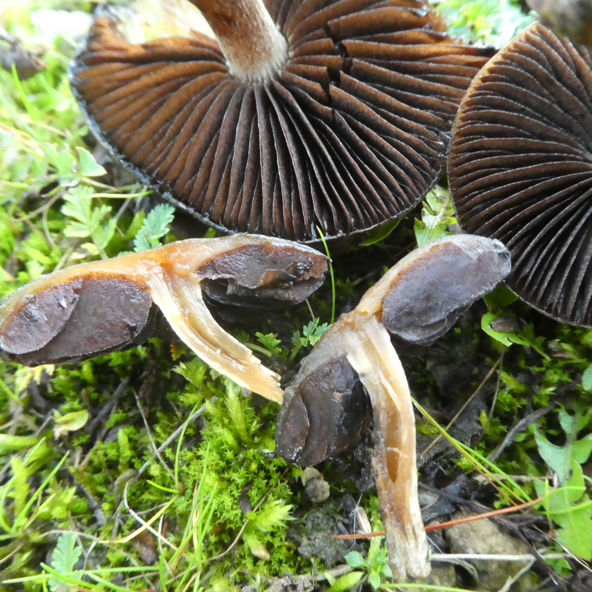 zur Zeit schaue ich mir ja jeden Pilz an der vielleicht auch nur im Entferntesten irgend etwas mit Cortinarien zu tun haben könnte. Und so habe ich mir auch diese Pilze heute angesehen wobei einer meiner Gedanken vor Ort war "mmmh, vielleicht Richtung Wasserkopf ..." So, und jetzt sitze ich da und habe nicht die Spur einer Ahnung was dies für Pilze sind, in welche Richtung ich eigentlich suchen könnte.