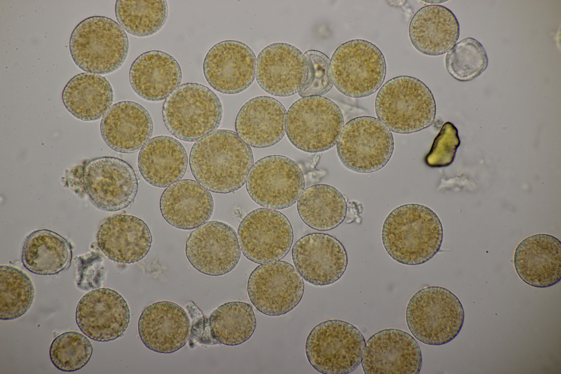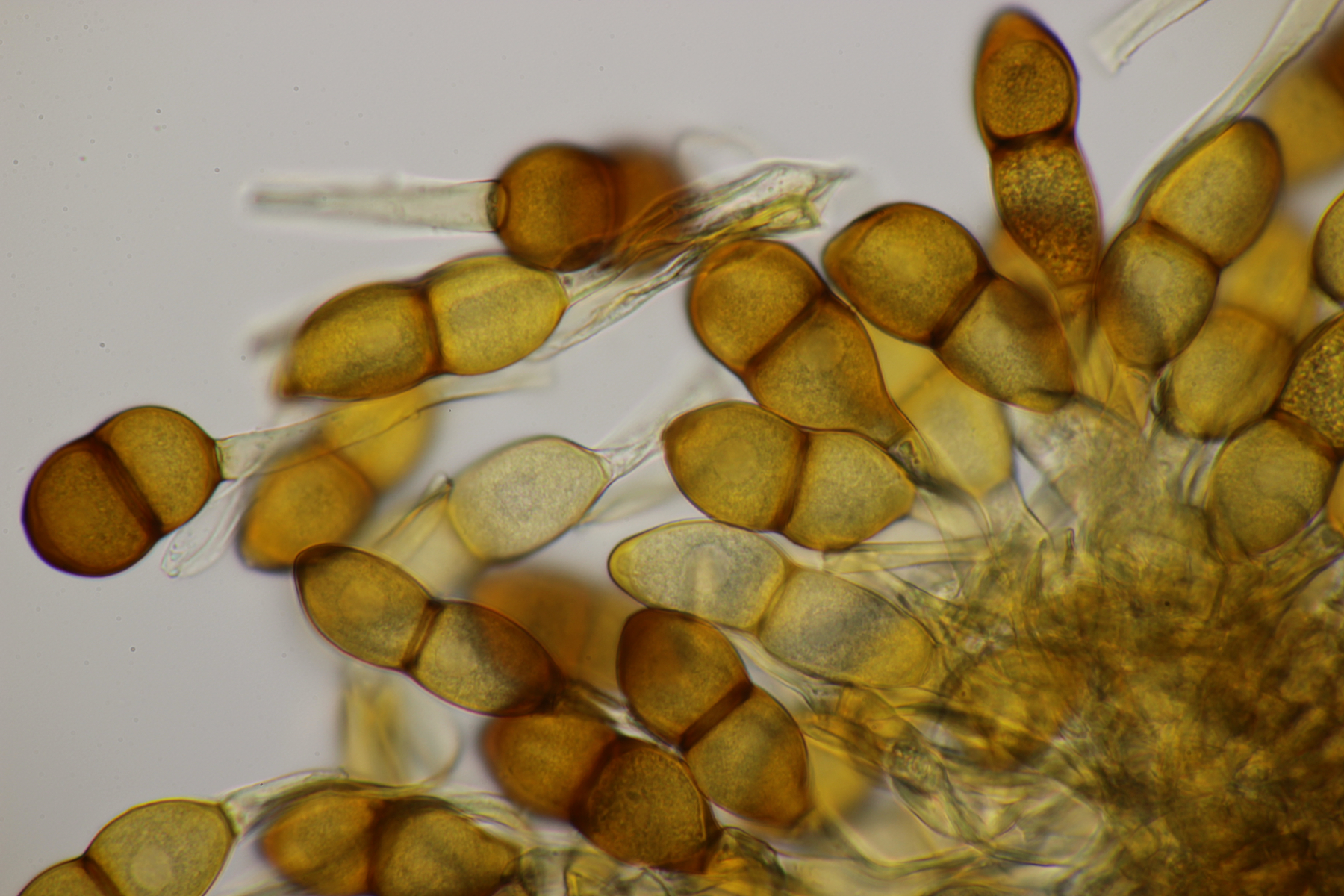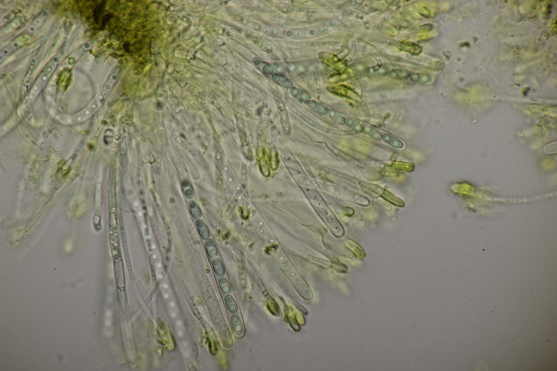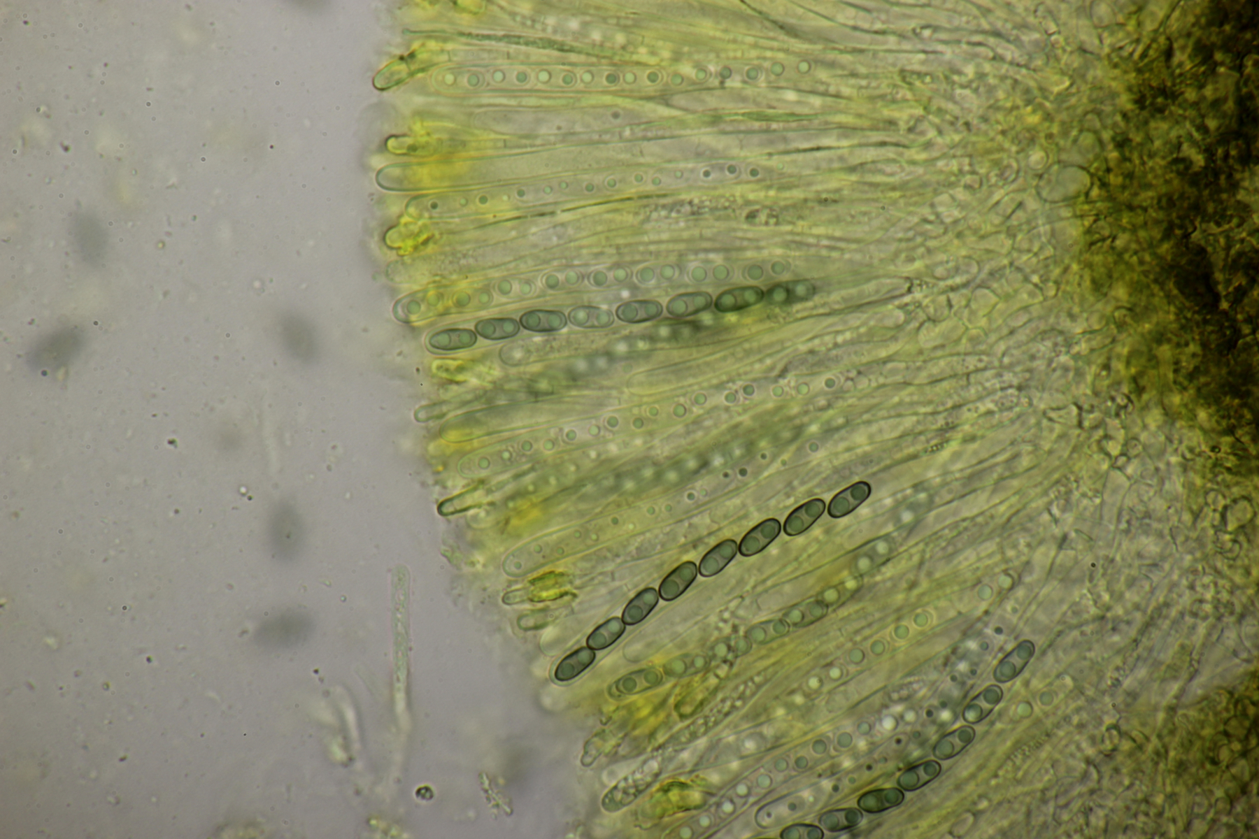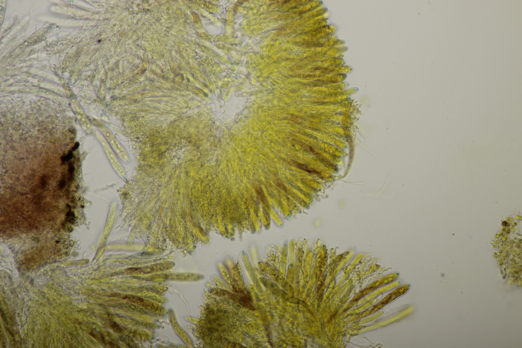 1. Peziza sp. Leider ihne eine einzige Spore