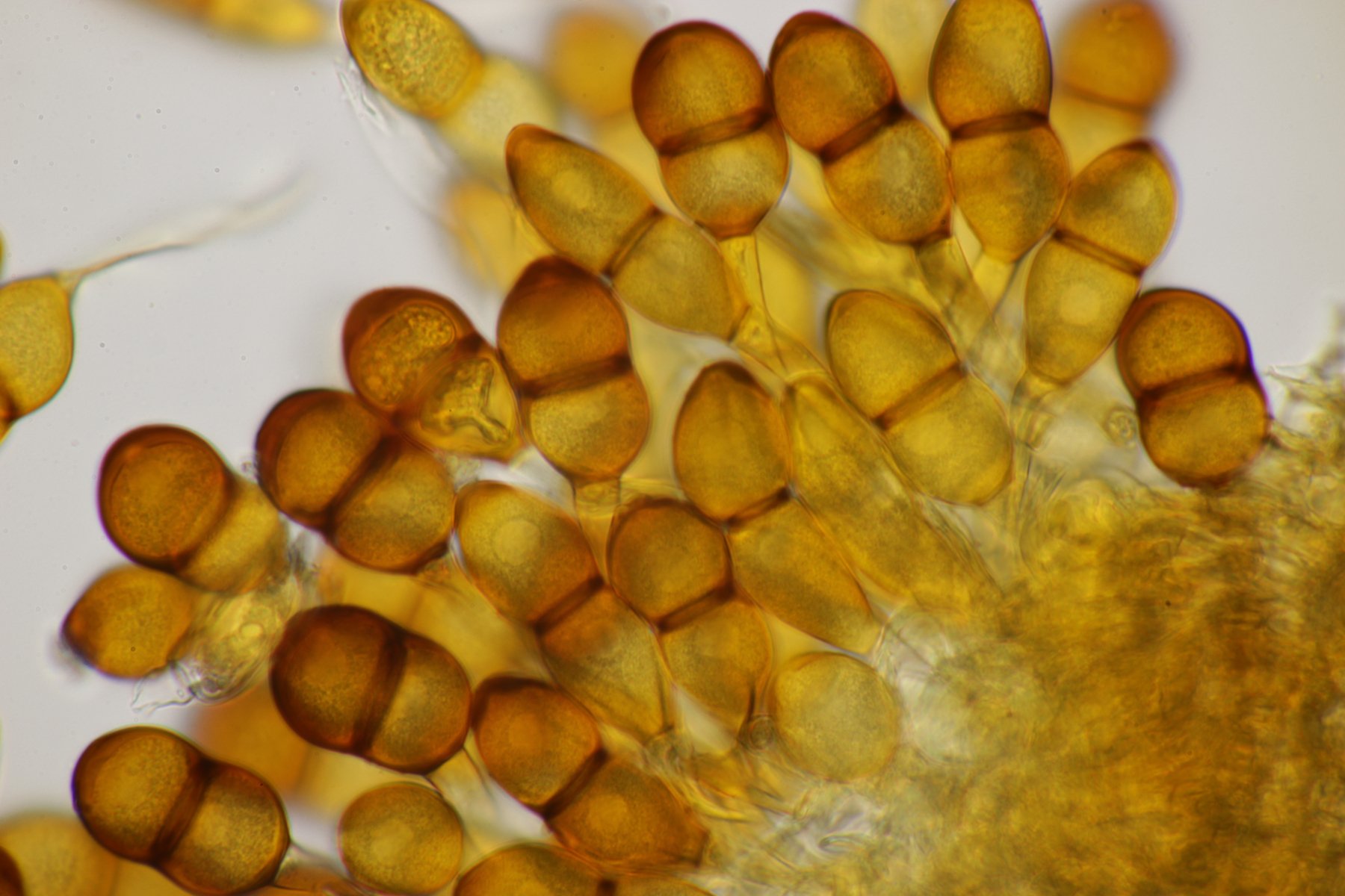 13. Tricholoma sp., gilbend und unter Birke. Sporenmaße (5.3+-0.4) µm x (3.5+-0.3) µm, Q=1.5+-0.1