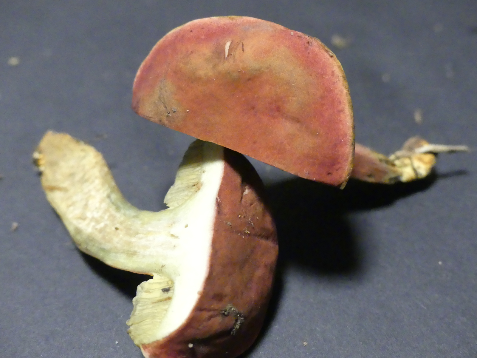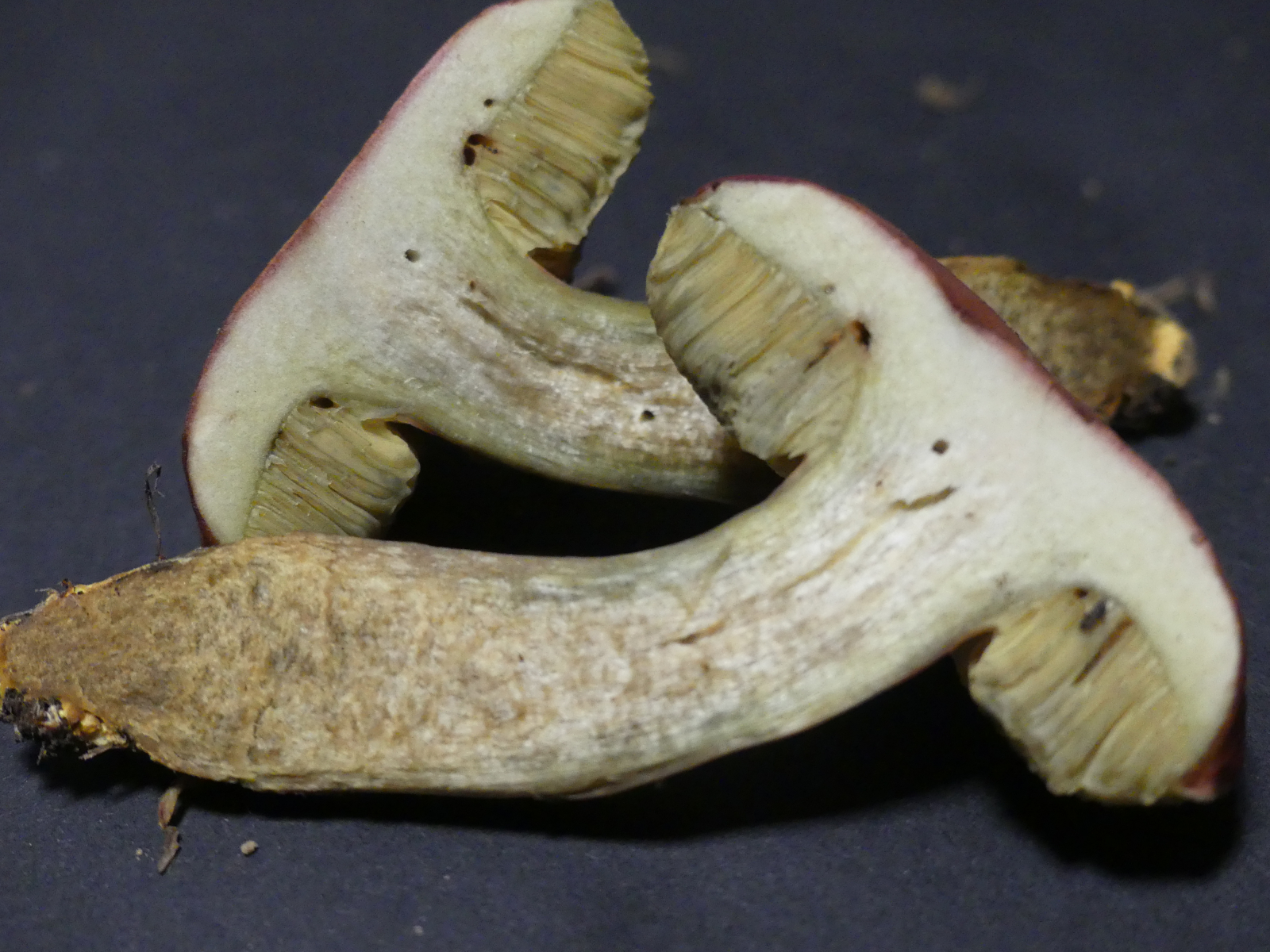 Zum Schnittbild: Da muss man hier mit einberechnen, daß H. rubellus vor allem im Sommer / Spätsommer Fruchtkörper bildet. Um diese späte Jahreszeit, kann da durchaus mal einiges anders aussehen. So zB die fehlenden Pünktchen in der Stielbasis und auch das zögerliche Verfärben, die bräunliche Farbe im unteren Stielteil und das blasse (statt gelbe) Fleisch.LG; Pablo.