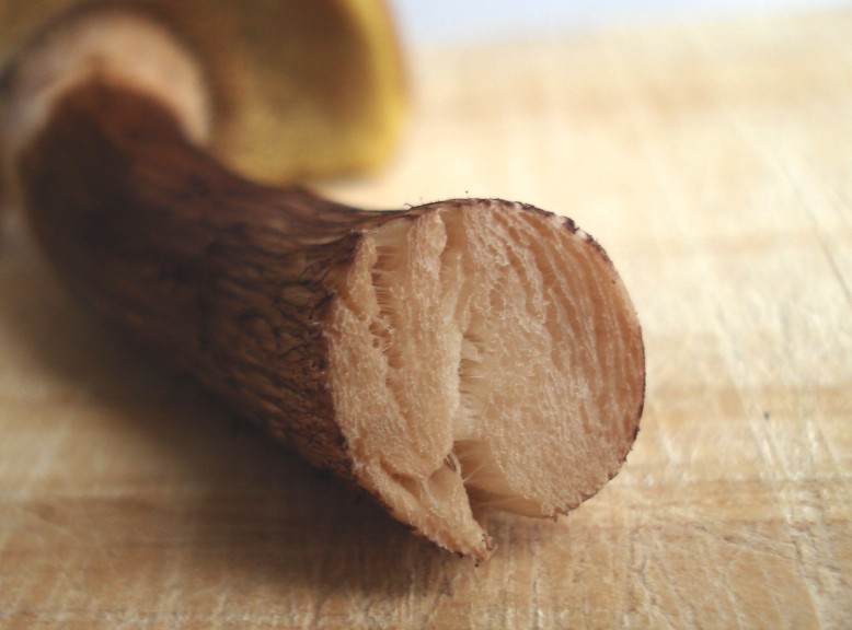 ---> Xerocomus subtomentosus kommt aufgrund der nicht gelben Stielspitze und des fehlenden Netzes auf selbiger nicht in Frage.