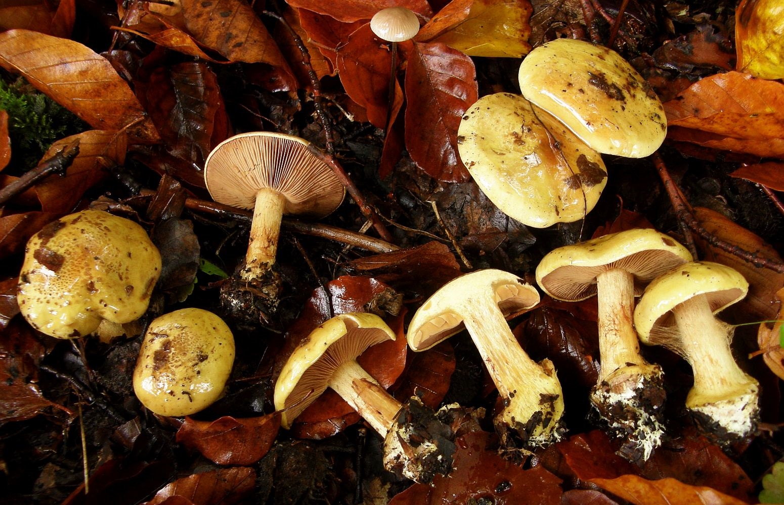 Nun hat es mich auch erwischt. In den letzten Jahren eher so sporadisch, aber beim Auskundschaften von mehr und mehr kalkigen Eckchen hier und anderswo, und weil's halt offenbar ein famoses Schleierlingsjahr ist, komme ich an den Dingern nicht mehr vorbei - ohne sie zu beobachten. Glücklicherweise haben die ja eine recht begrenzte Periode, in der vermehrt Fruchtkörper gebildet werden, kann man also durchaus noch zusätzlich zu ein paar anderen Infektionen aushalten. ![]()