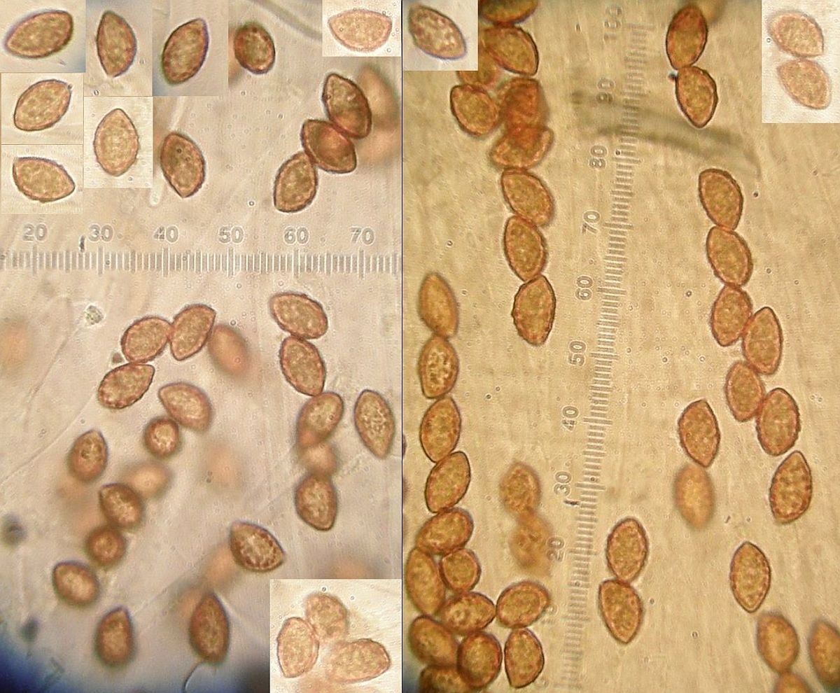 Im Exsikat werden die Hutoberflächen dunkler, kupferbraun, teils weinbraun, stellenweise mit Purpurton.
