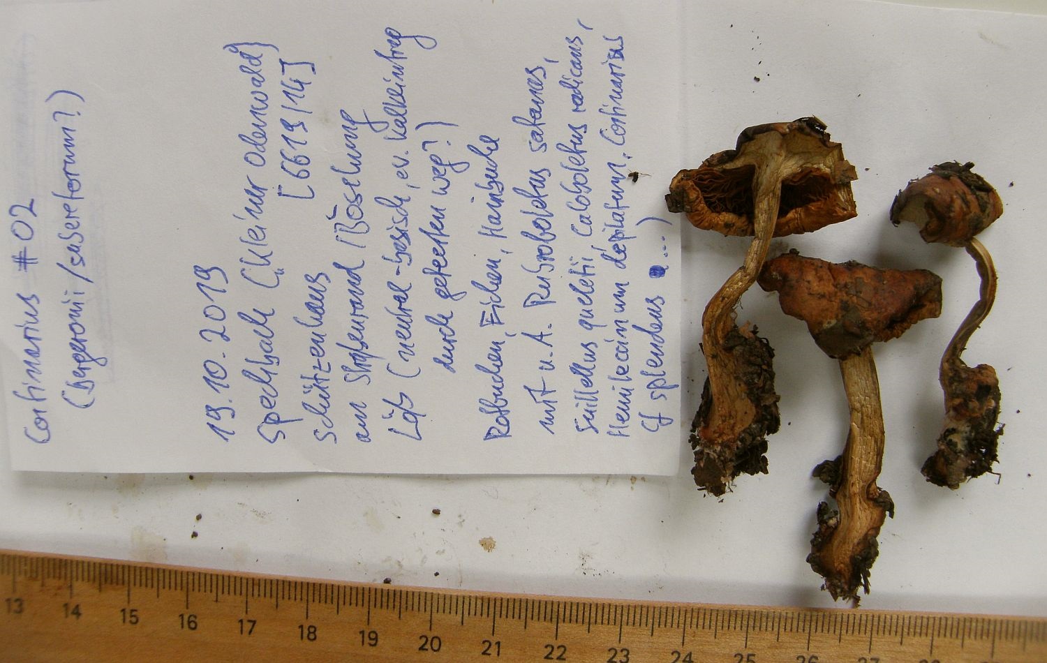Gefunden am 19.10.2019 bei Spechbach ("Kleiner Odenwald") an einer Wegböschung neben einem asphaltierten Fahrtweg, auf der anderen Wegseite eine Wirtschaftswiese; Untergrund Löß, vor allem im Bereich der Böschung basisch, zudem wärme- und lichtbegünstigt; wächst zusammen mit allerlei bunten Boleten (u.A. satanas, queletii, radicans), Korallen, weiteren Phlegmacien, also inmitten diverser "Kalkzeiger" unter Rotbuchen, Hainbuchen und Eichen.