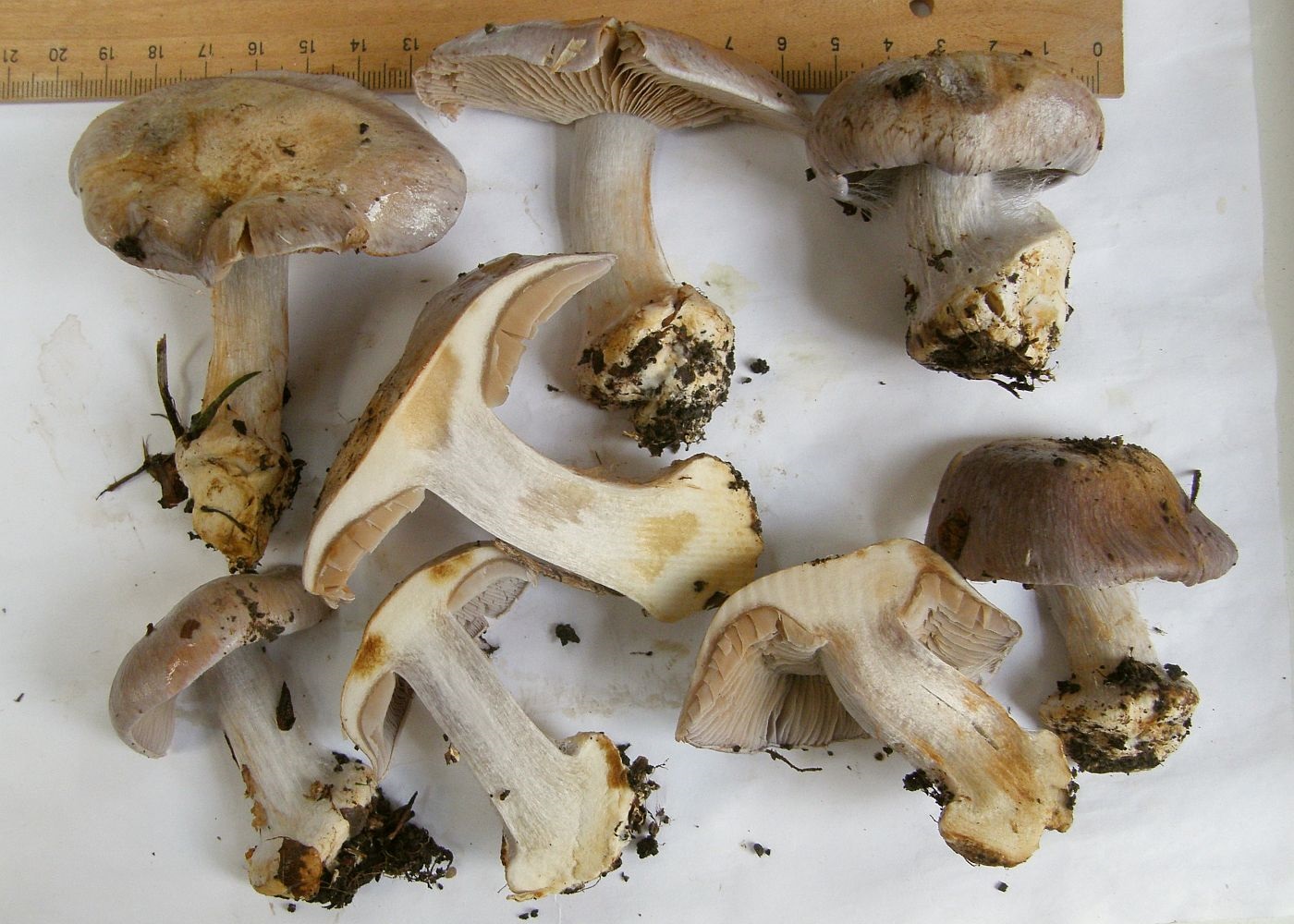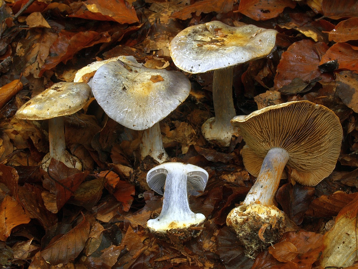 Den Schlüsselpunkt 7 in FN Schlüssel A auf Seite 784 verstehe ich nicht so wirklich, muss ich gestehen. Da bin ich beiden Pfaden gefolgt, und wenn Cortinarius alcalinophilus blaues Hutfleisch (und eine blaue Stielspitze) haben darf, dann doch eher der als Cortinarius bergeronii (= cedretorum var. suberetorum), bei dem ich zunächst gelandet war, weil bei alcalinophilus nichts von blauem Fleisch im Schnitt zu lesen war. Abbildungen im Netz sind dazu sehr verwirrend, das sieht fast alles so aus, als würde immer wieder die selbe Art unter verschiedenen Namen abgebildet. Also teils als "cedretorum", teils als "bergeronii", teils als "suberetorum" und einige Abbildungen von "alcalinophilus" sehen auch so aus.