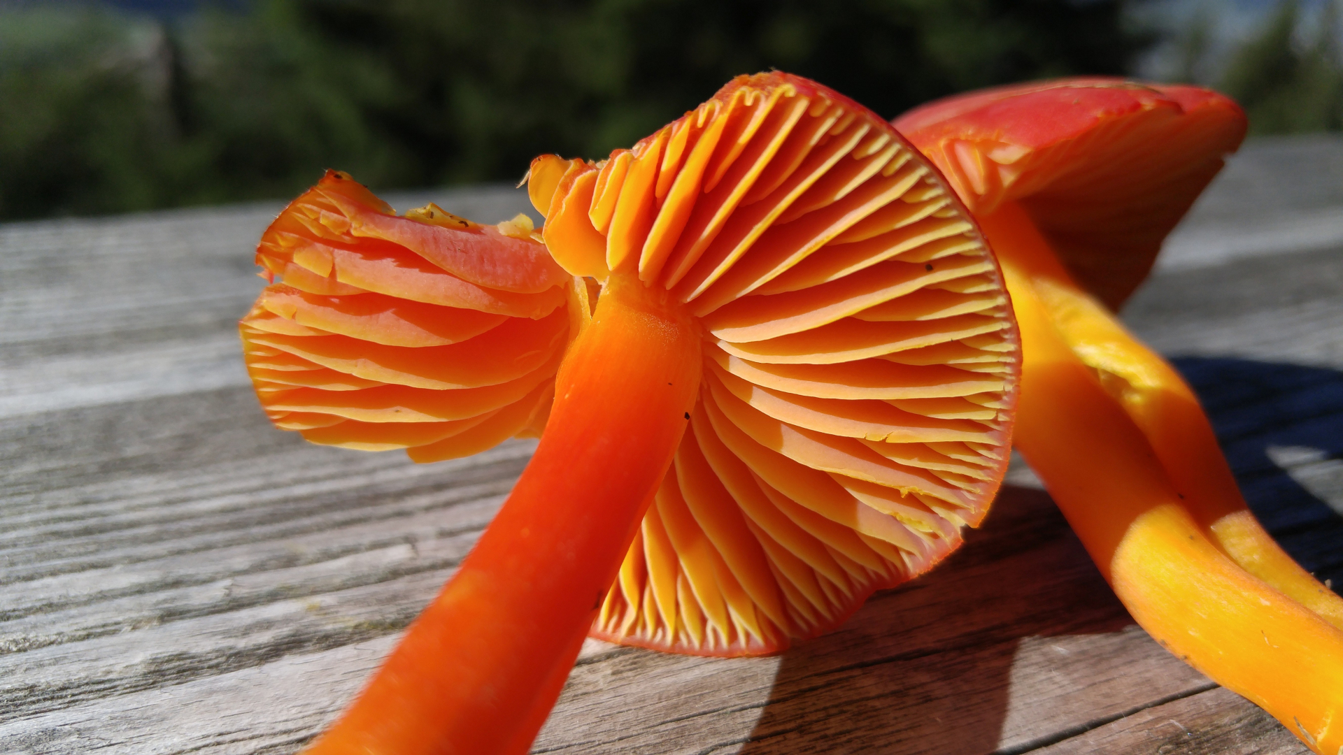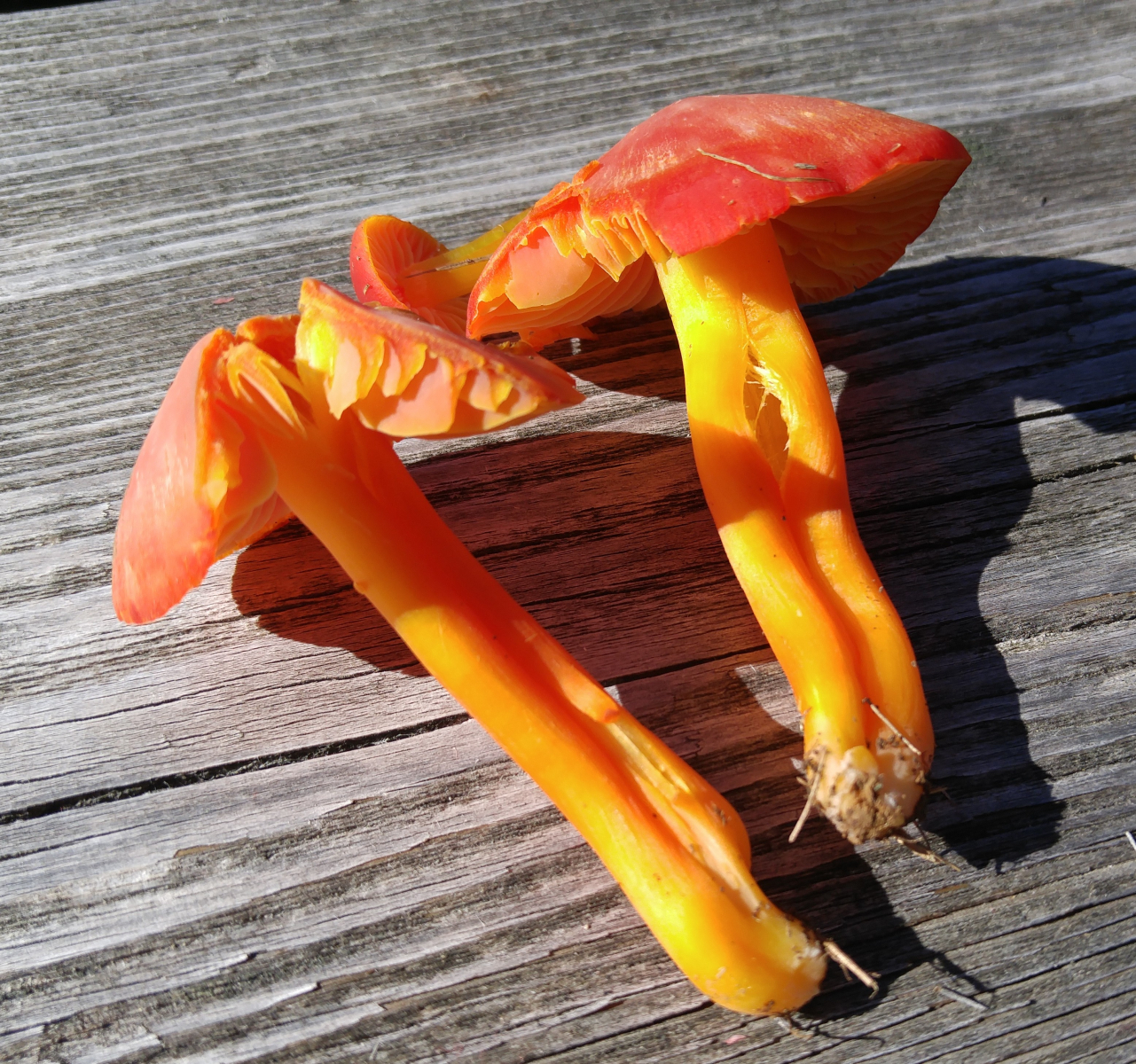 Und als "Einstand" hier ein zwei schöne Fotos vom Größten Saftling (Hygrocybe punicea), den ich dieses Jahr auf ca. 1500 Höhenmeter in den Kitzbüheler Alpen unter einer Graswase gefunden habe.