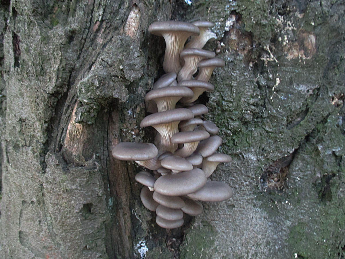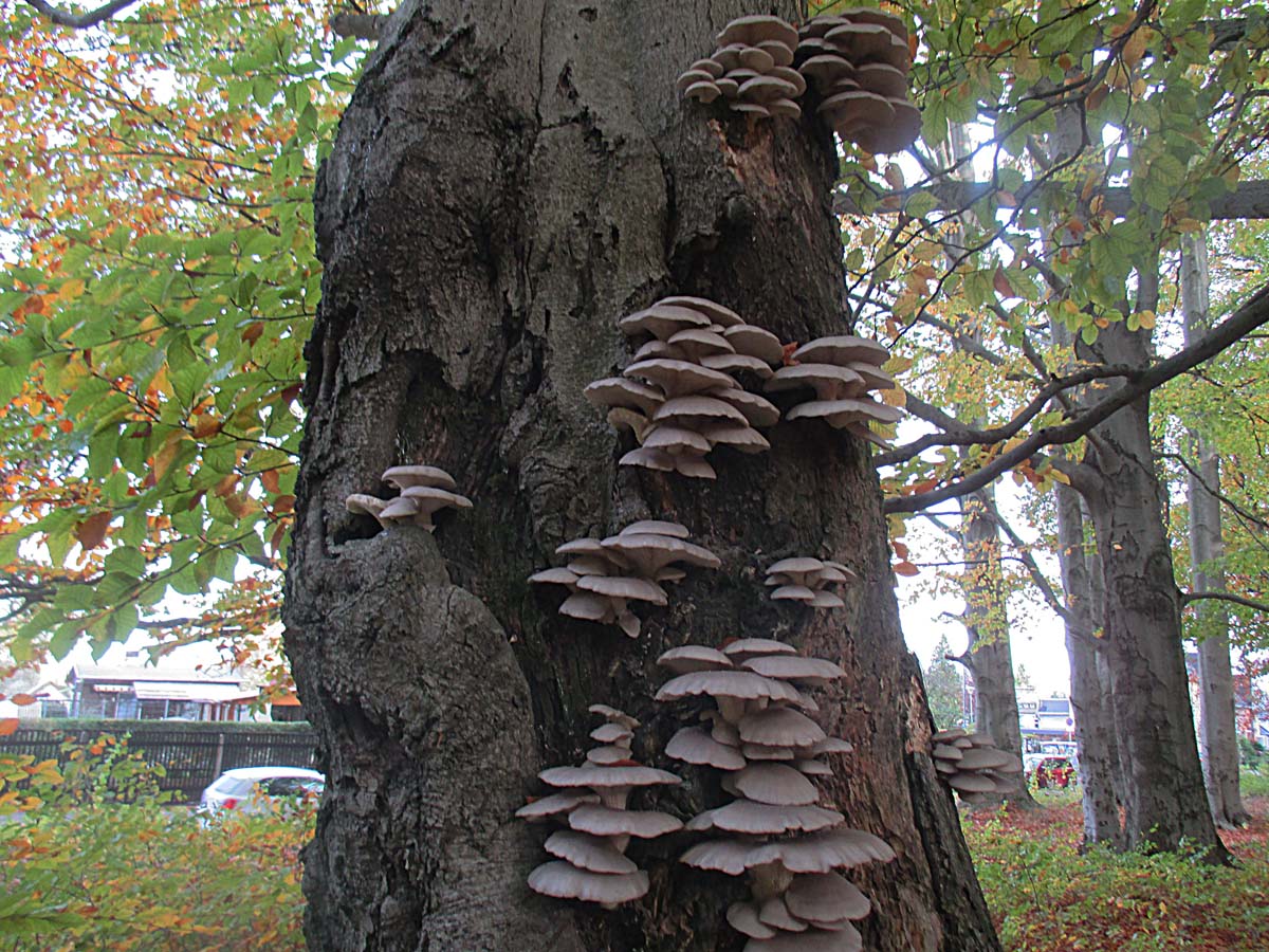 An einigen Bäumen waren auch Sparrige Schüpplinge (Pholiota squarrosa) vorhanden.