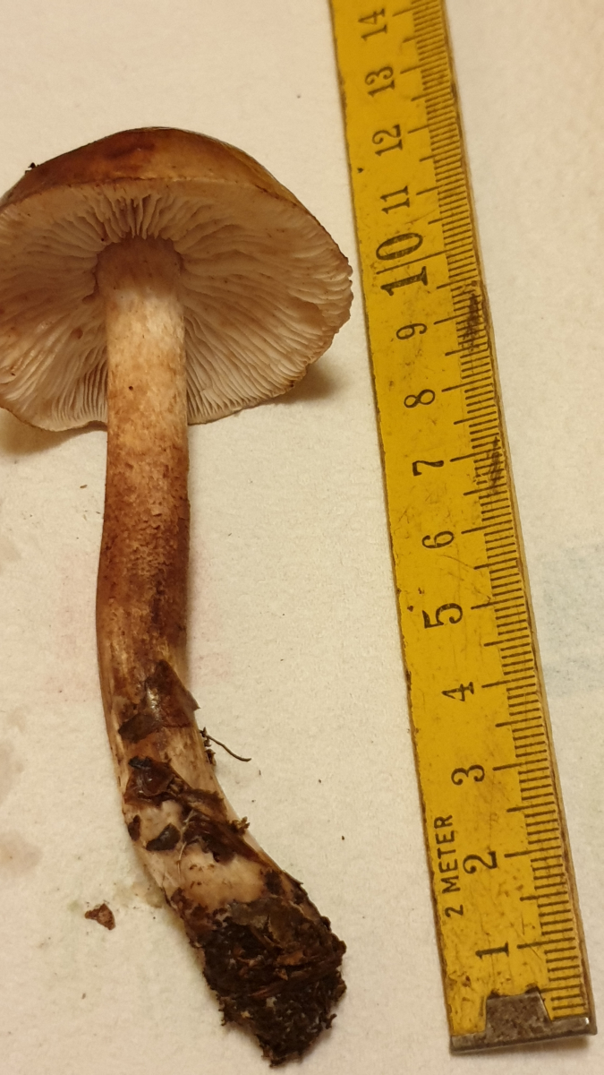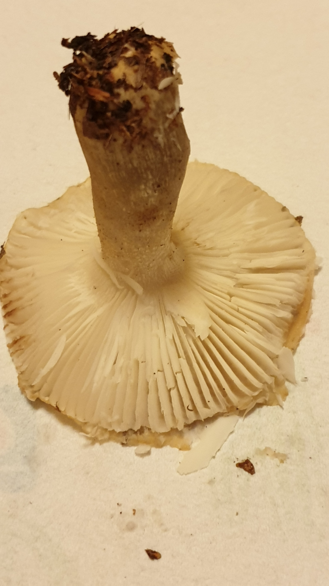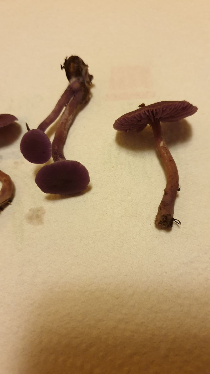 neben Maronenröhrlingen und jeweils einer Flockenhexe und einem gerade noch brauchbaren Steini habe ich, wie ich vermute einige Violette Lacktrichterlinge, 3, wie ich vermute, Ockertäublinge (Ockerfarbener Hut, weißer Stiel, weiße Lamellen und unten am Stiel konnte ich kleine Stückkee auslösen, er ist also sehr spröde. Der Hut brricht auch sofort beim leichten umbiegen) und 2 mir unbekannte Blätterpilze mit glitschigem Hut, von denen ich gerne wüsste, welche Art das ist.