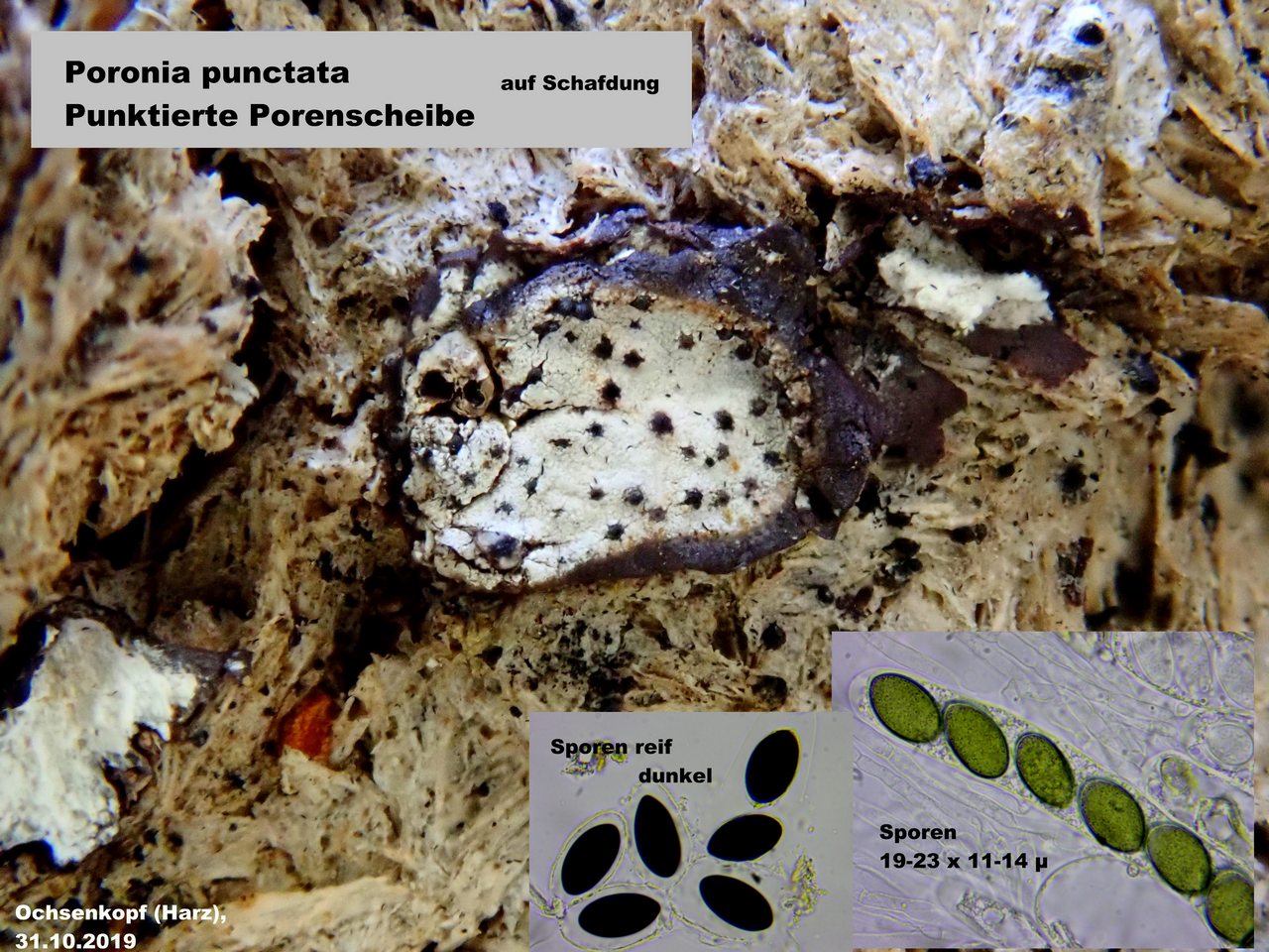 Immer wieder etwas Besonderes. Die Punktierte Porenscheibe (Poronia punctata), die wir am Ochsenkopf in ungeheuren Mengen an Schafdung fanden!