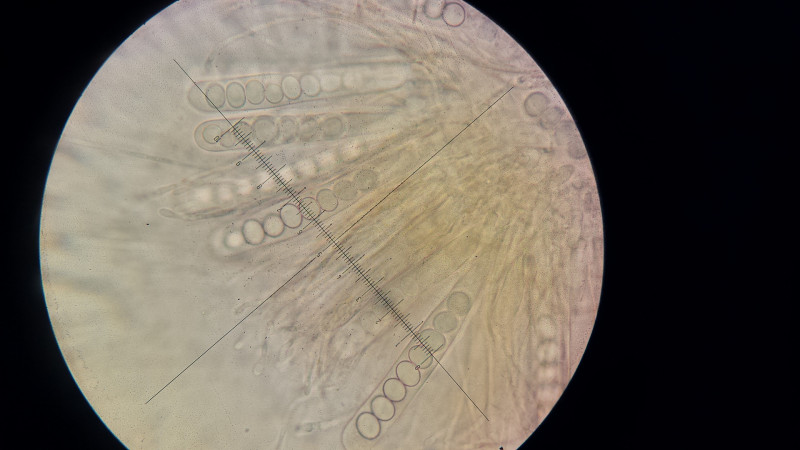 Die von Dir gezeigte Art hat subglobose Sporen von 8,5-10 x 6,5-7,5 µm und uniseriate Asci von 80-90 x 12-14 µm.