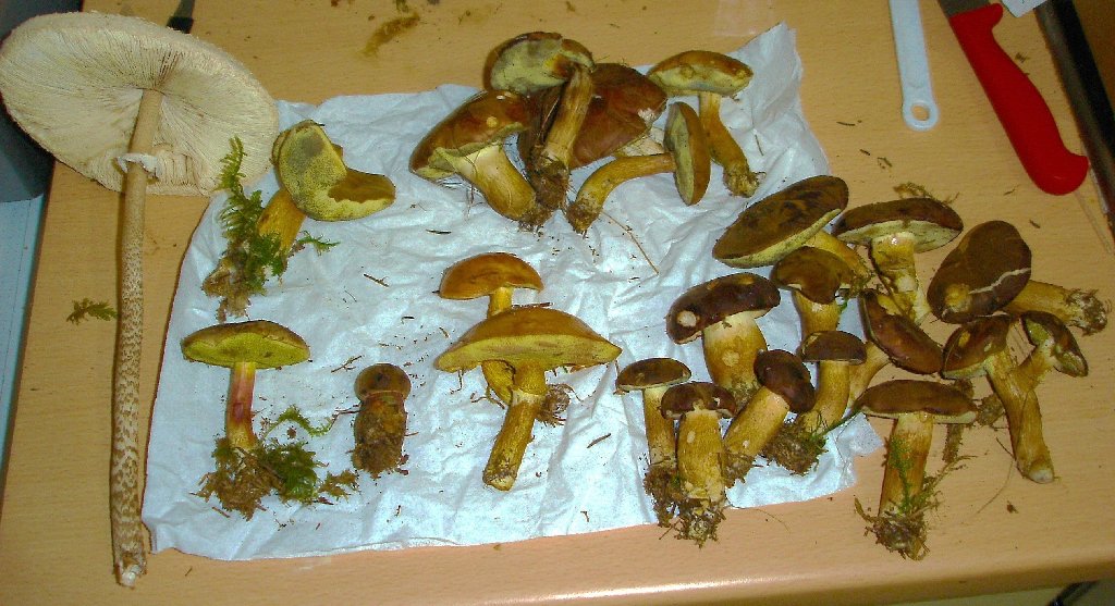 1. Maronen und andere Filzröhrlinge (rechts, hellere Huthaut)