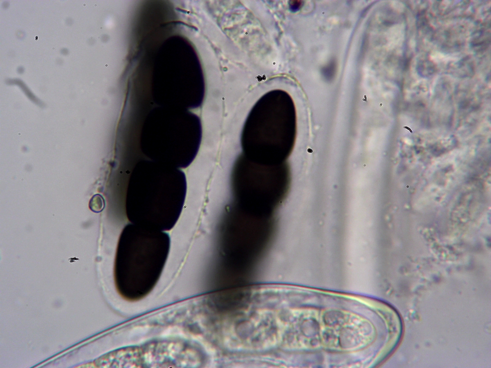 Jetzt kam dort eine für mich neue Sporormiella zum Vorschein. Asci 8-sporig an der Basis lang auslaufend, Sp. 4-zellig 75-80 x 15 µm. Ich denke, das ist S. megalospora.