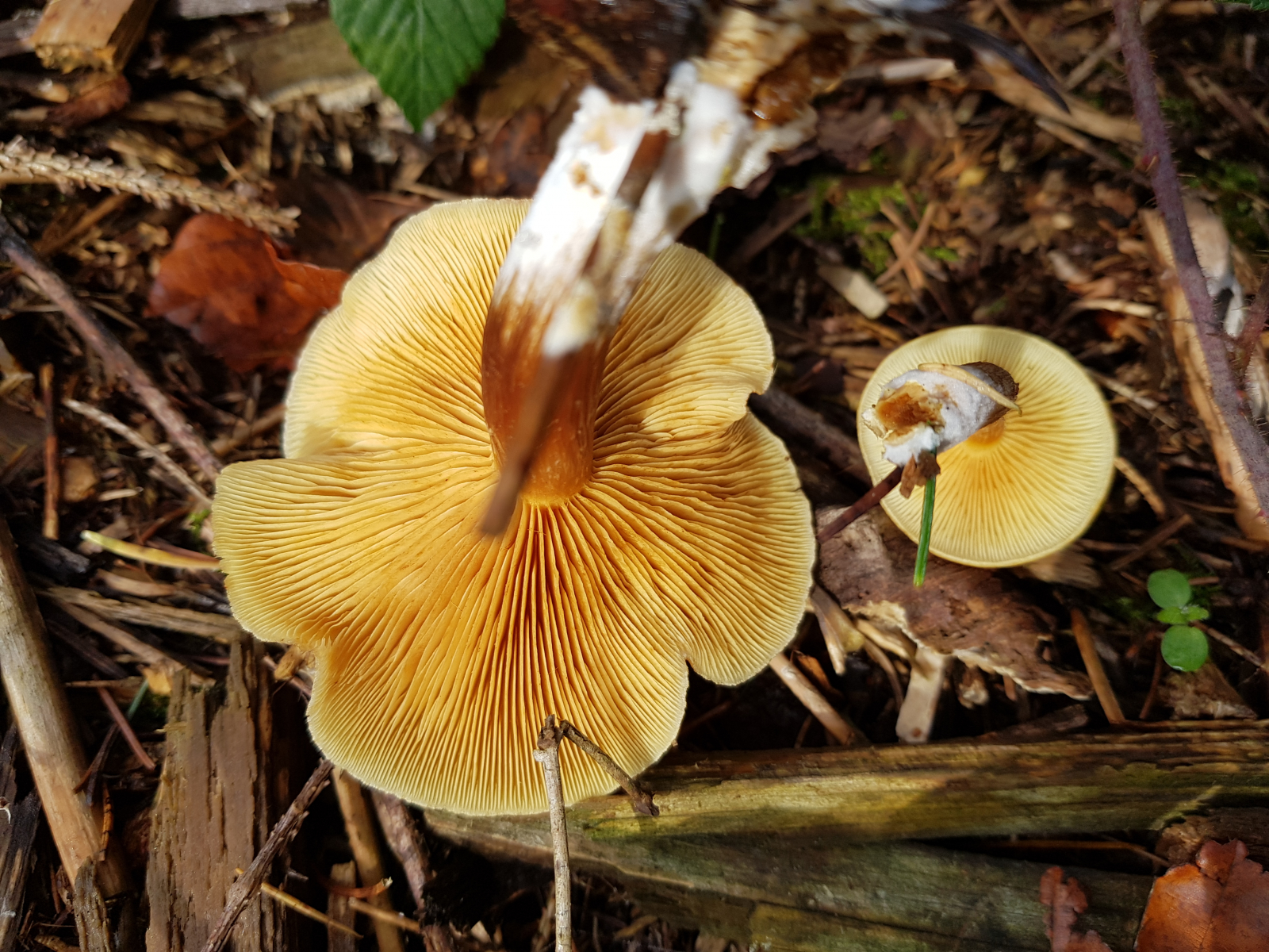 Und die letzten beiden stammen aus meiner Siedlung, nicht aus dem Wald. Die stehen zusammen mit Erdritterlingen unter einzelnen Kiefernbäumen. Das eine halte ich für einen Körnchenröhrling, das andere ist mir gänzlich unbekannt. Würde mich aber interessieren, da das direkt hinterm Haus wächst :)
