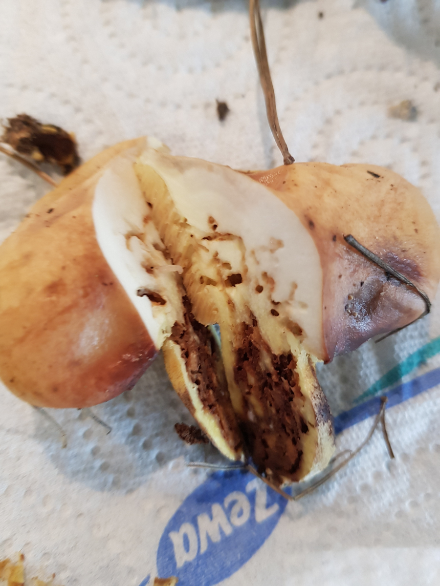 • Ja, so habe ich das mit dem Gelbfuß und dem orangenen Pilz gemacht (mit dem ich nach wie vor nicht sicher bin; habe Flämmlinge gegoogelt und habe zumindest nichts gesehen was augenscheinlich so richtig passen würde). Bei dem Röhrling hatte ich das Gefühl dass das nicht nötig sein wird, weil der sicher leicht zu bestimmen ist. So kann man sich täuschen :)