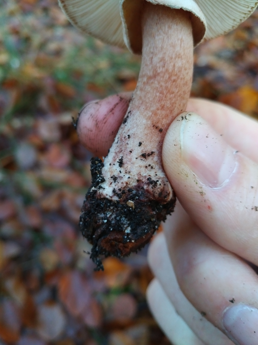 Fruchtkörper Nr. 2 - Da die Velumreste auf der Huthaut noch nicht zu Flocken auseinandergerissen sind, bin ich mir etwas unsicher, ob das definitiv ein Perlpilz ist. Habe bisher noch nicht viele so junge Fruchtkörper gesehen.