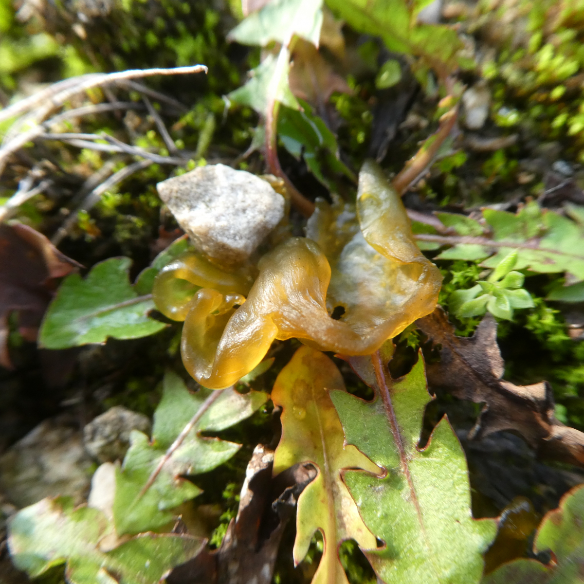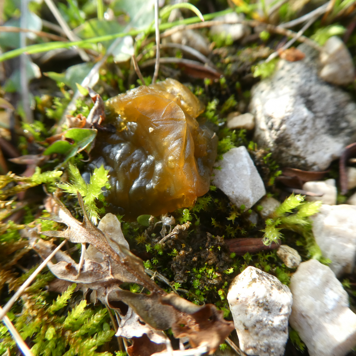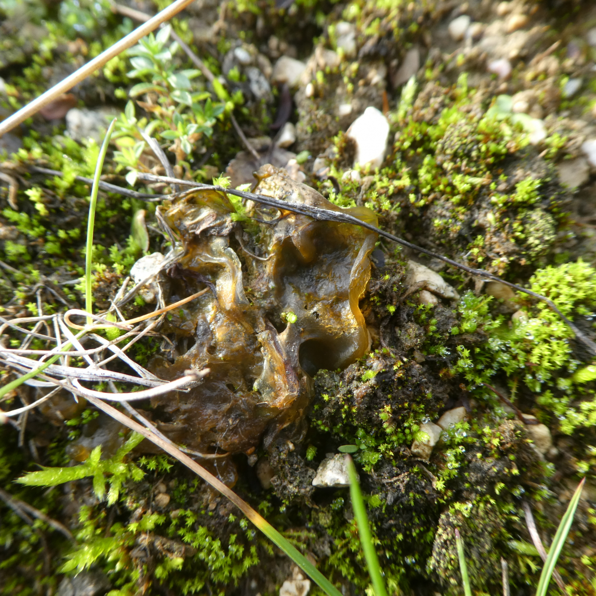 Ich vermute Nostoc commune. Hier ein schöner Beitrag zum Thema.