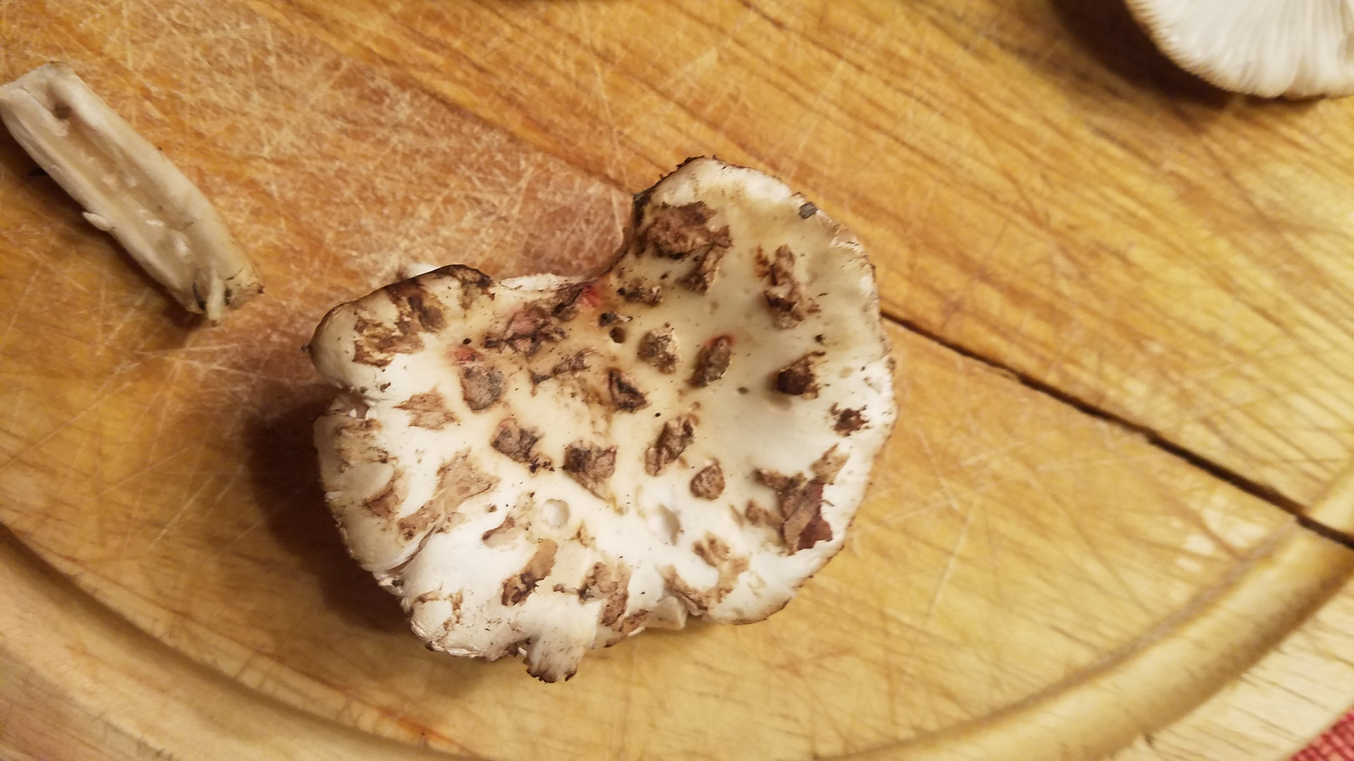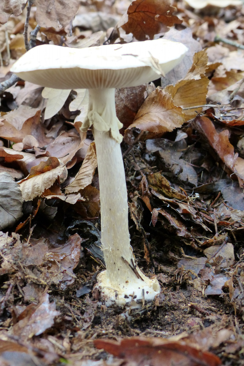 Spontan würde ich auf einen Knollenblätterpilz tippen... nur welcher? Ich tendiere ja fast zum Gelben (Amanita citrina). Für den Grünen ist mir da einfach zu wenig Grün und die scholligen Hüllreste auf dem Hut sprechen für mich für den Gelben Knollenblätterpilz.