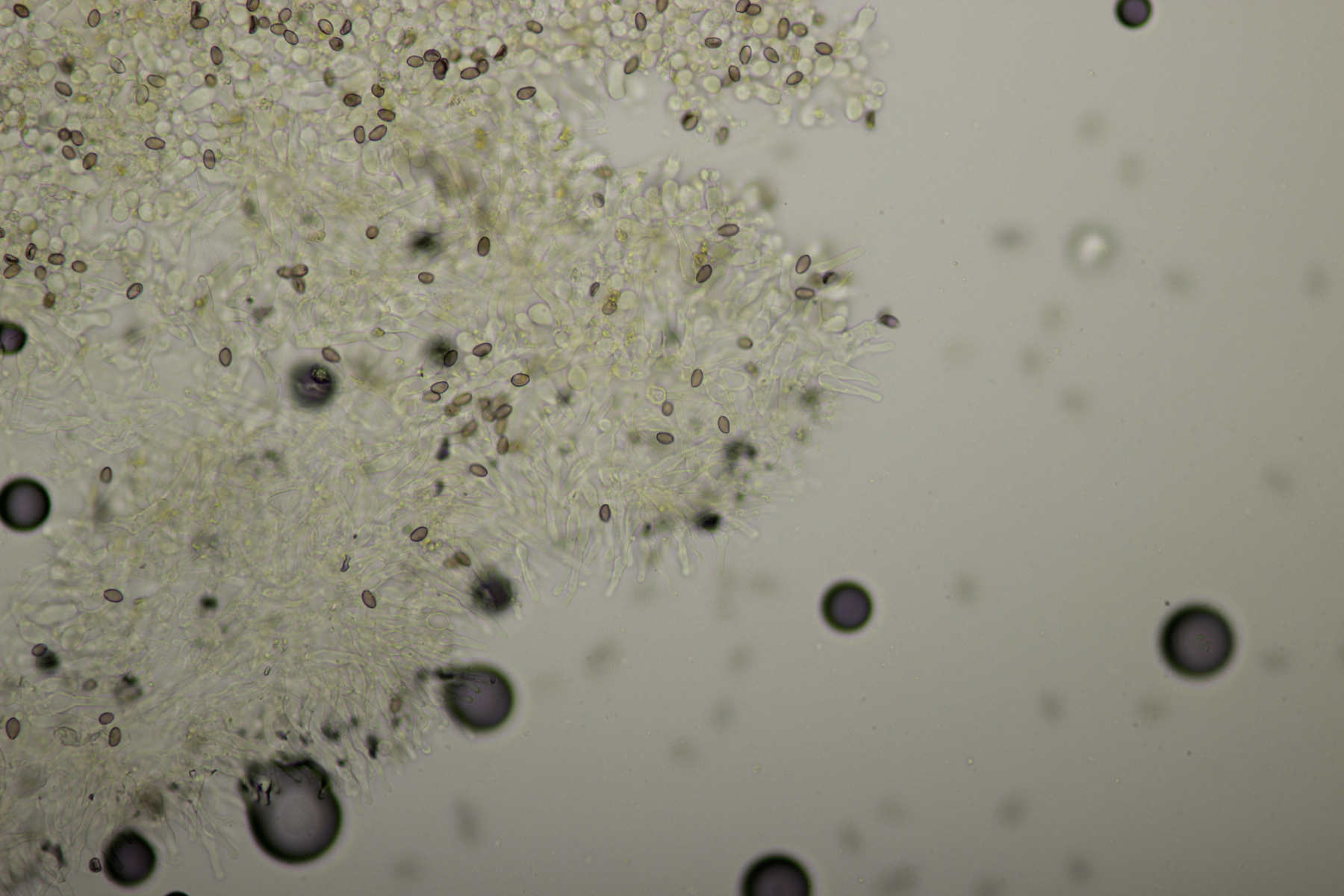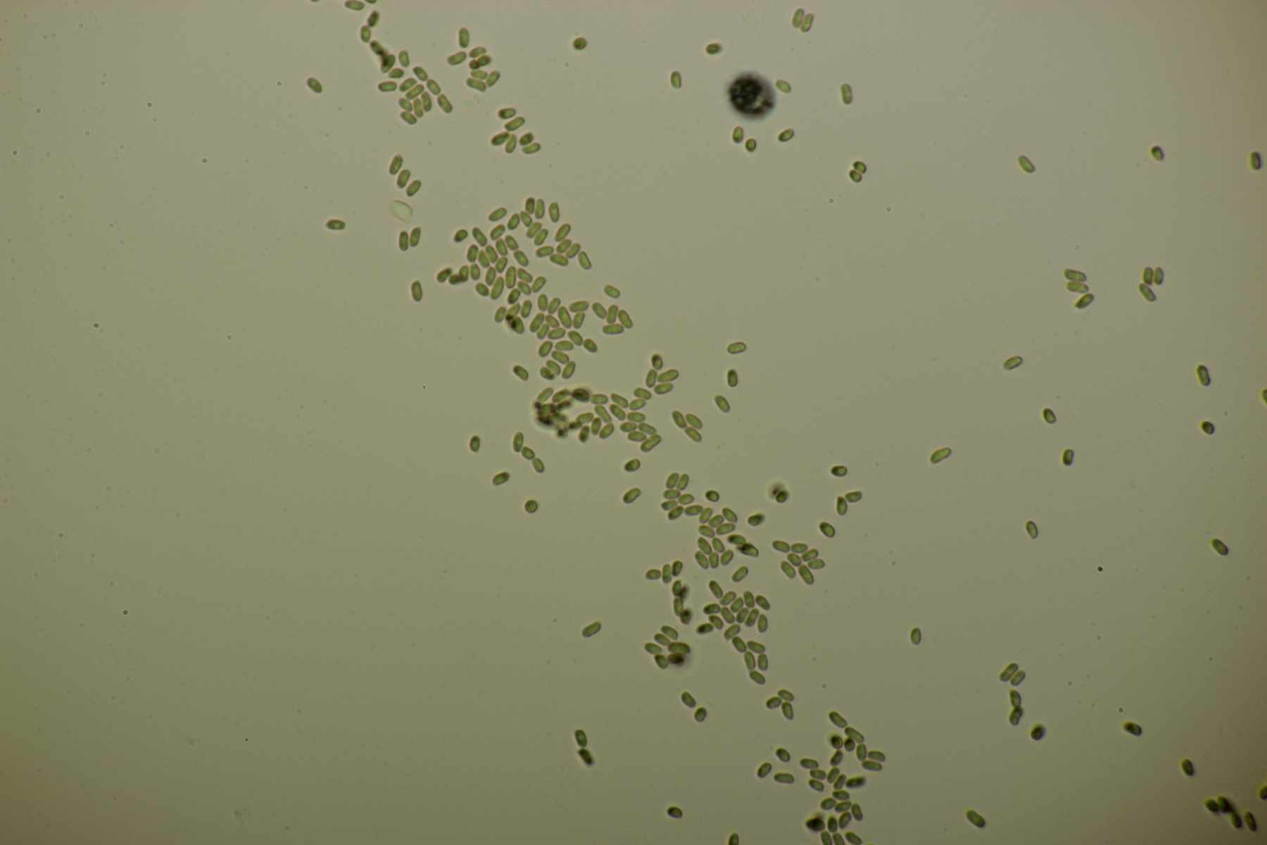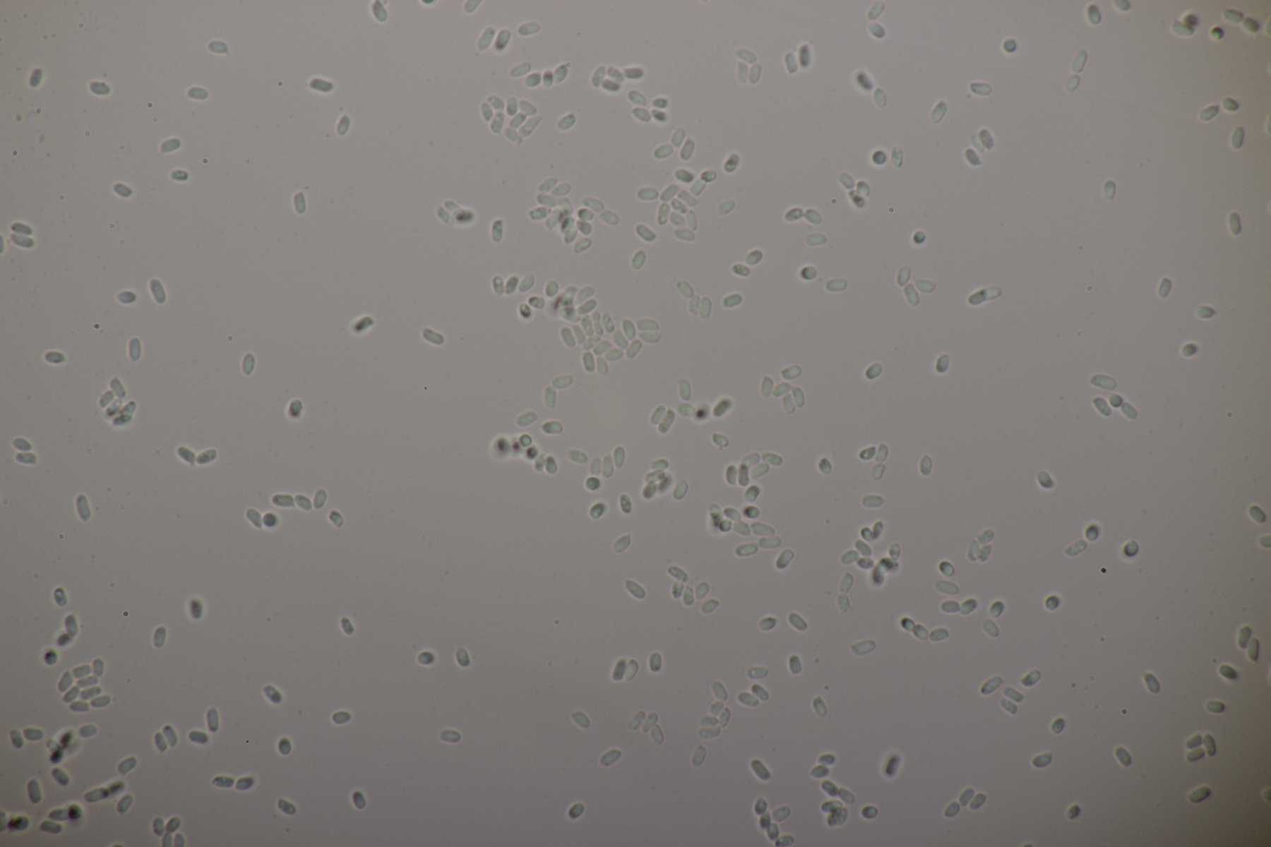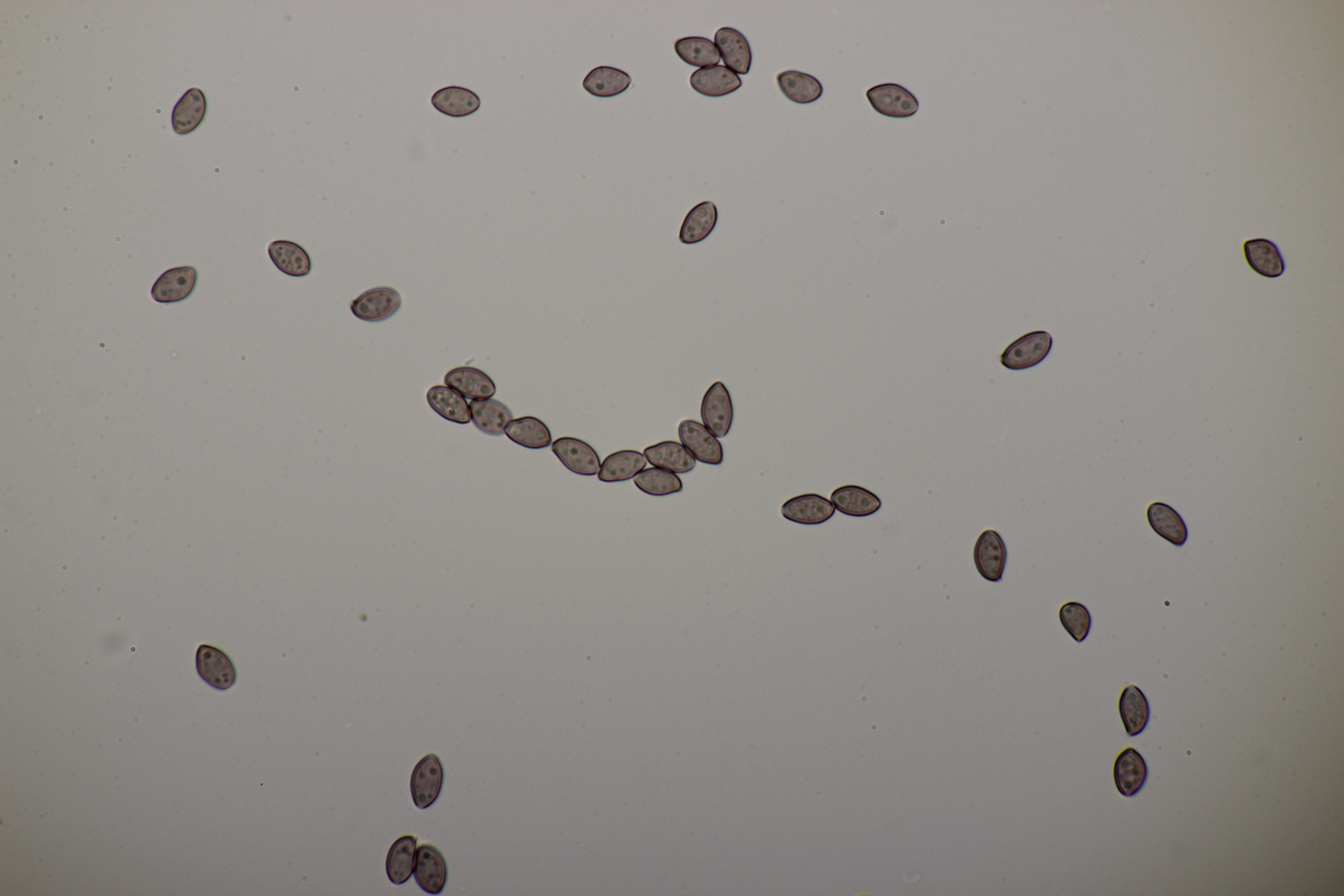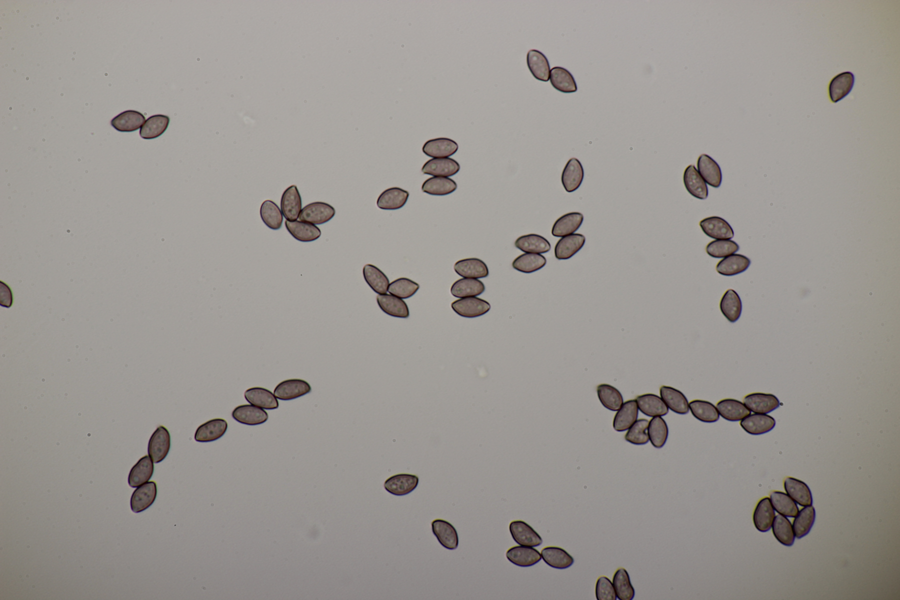 5. Nochmal die weiße Tricholoma/Riecholoma unter Eiche. Geruch eine Mischung aus Dosenspargelgeruch und süßlicher Komponete. Sporengröße (6.5+-0.5) µm x (4.0+-0.4) µm, Q=1.6+-0.2