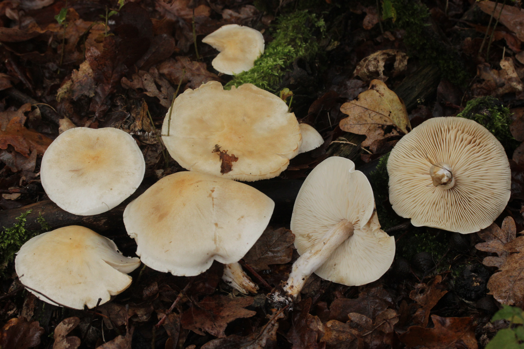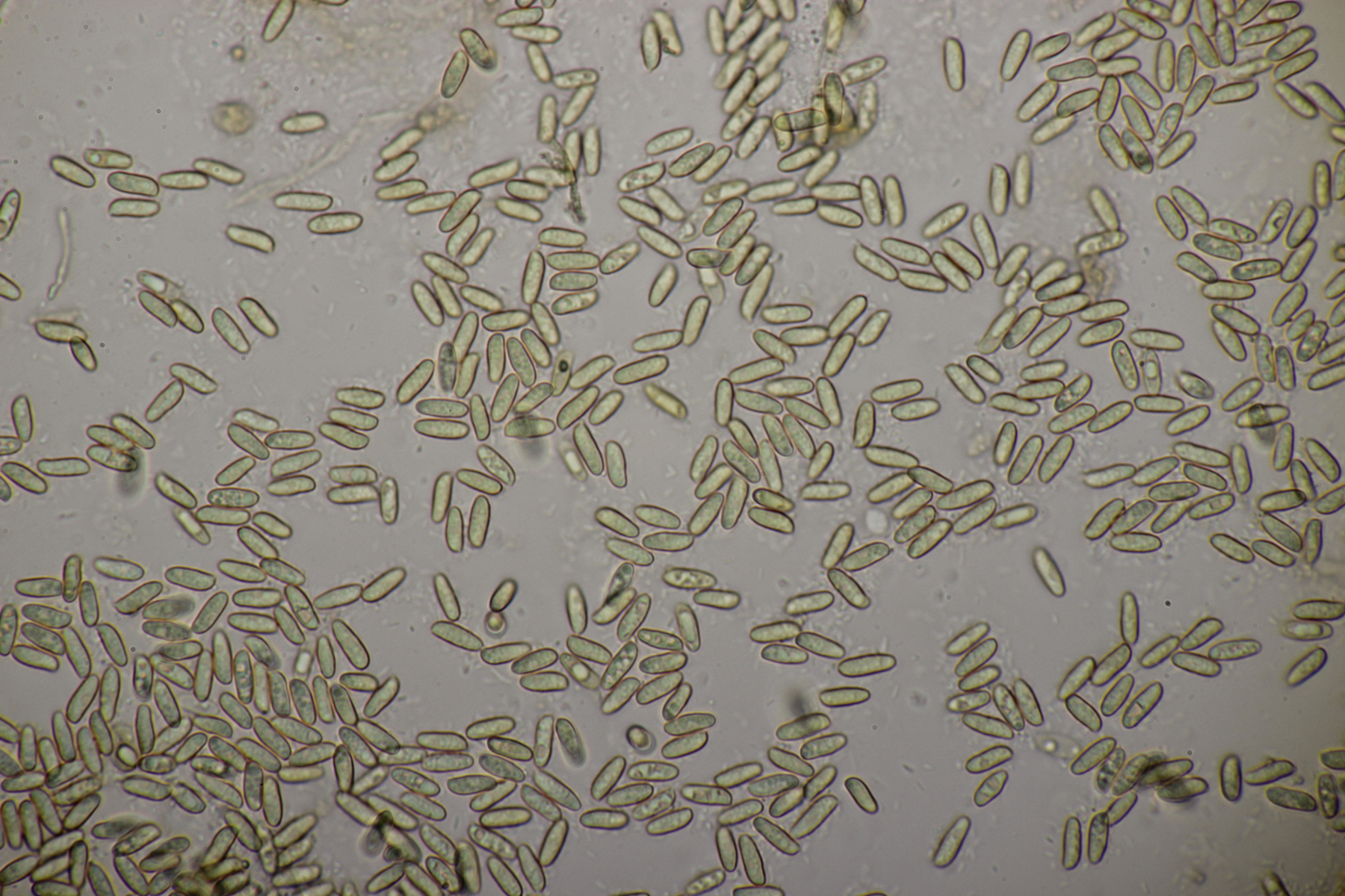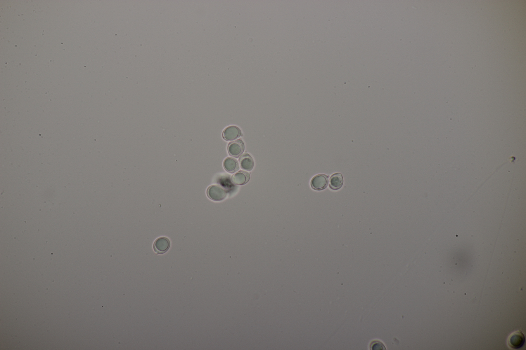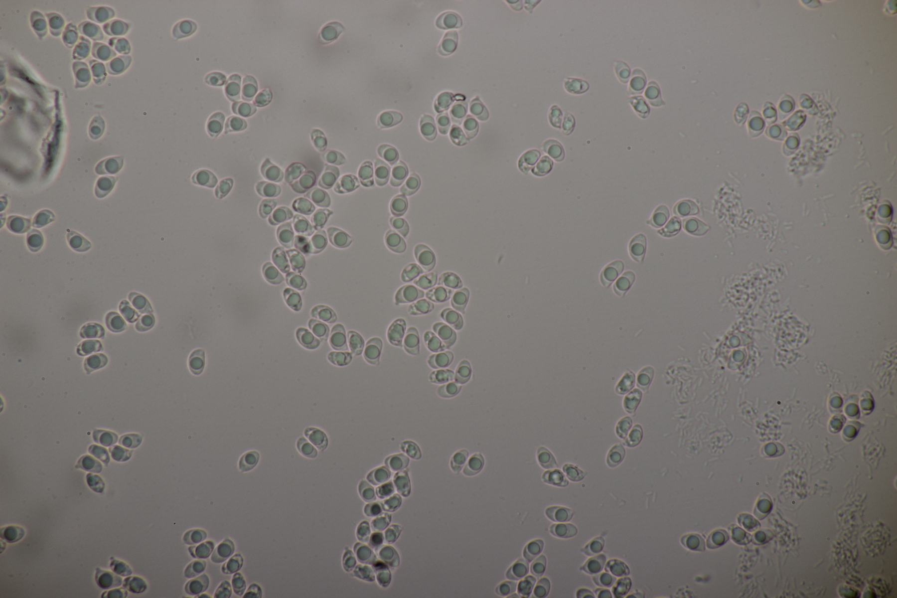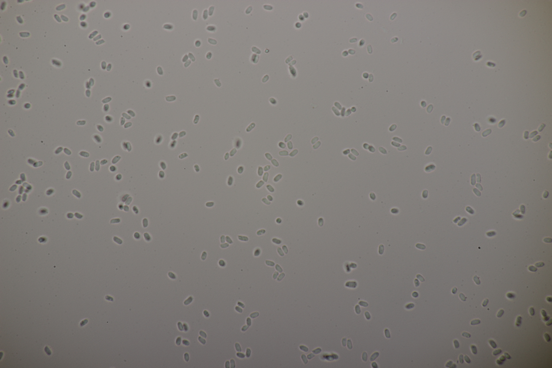 5. Nochmal die weiße Tricholoma/Riecholoma unter Eiche. Geruch eine Mischung aus Dosenspargelgeruch und süßlicher Komponete. Sporengröße (6.5+-0.5) µm x (4.0+-0.4) µm, Q=1.6+-0.2