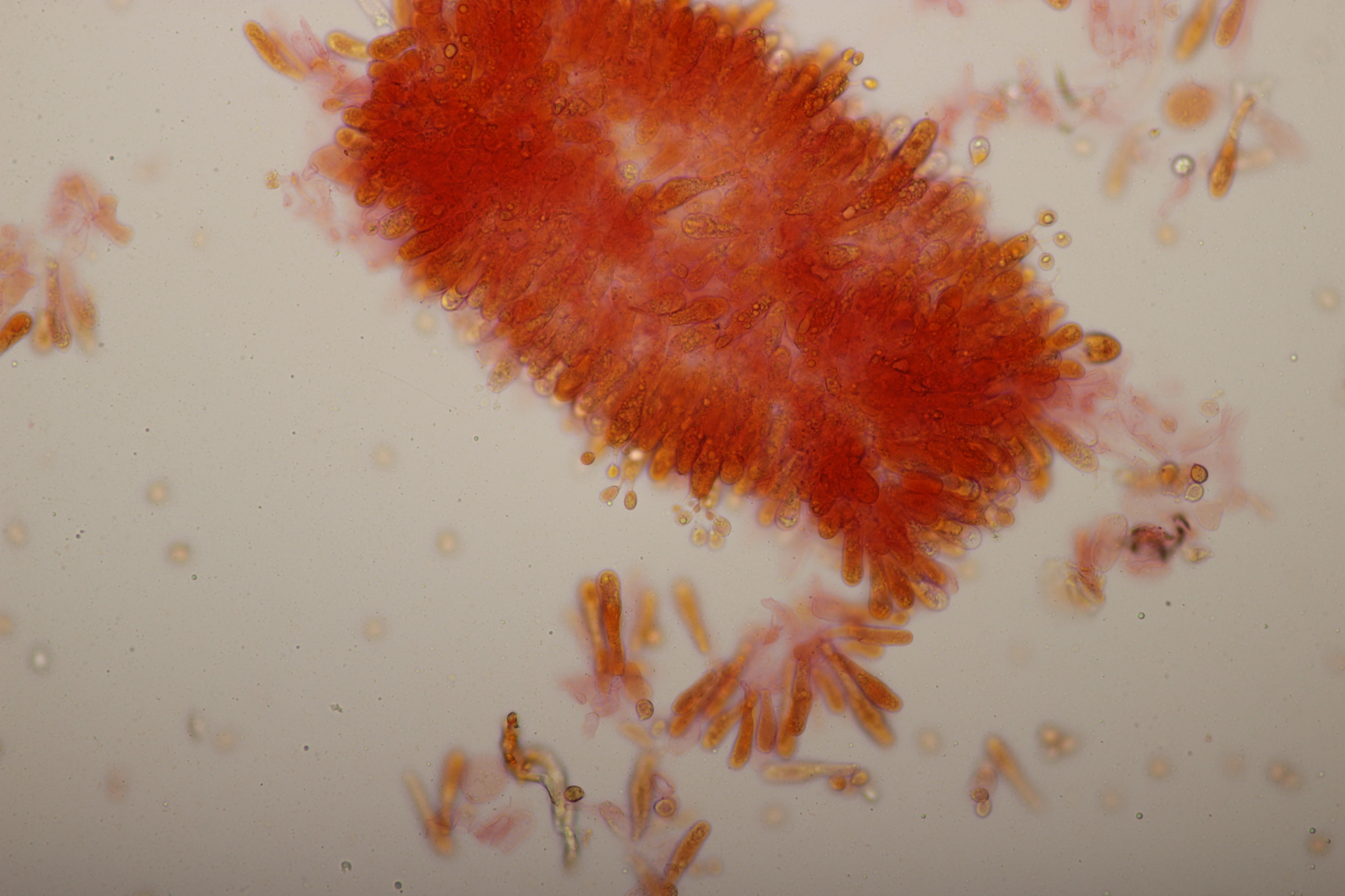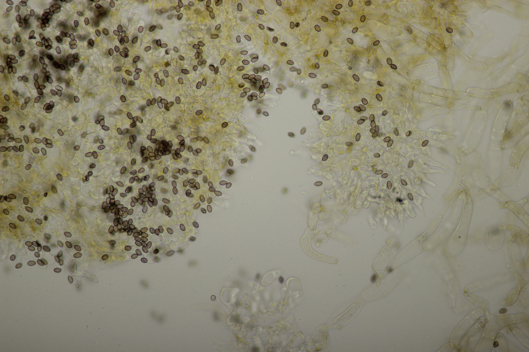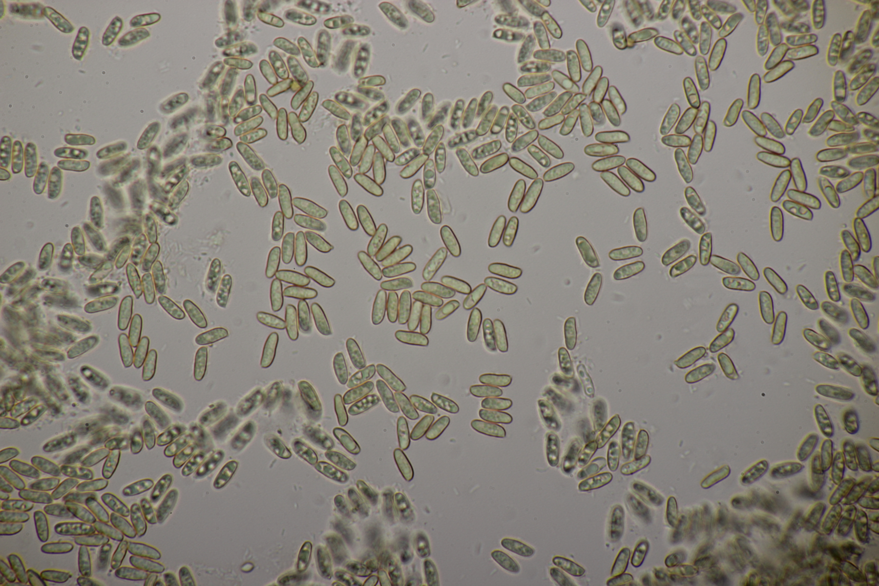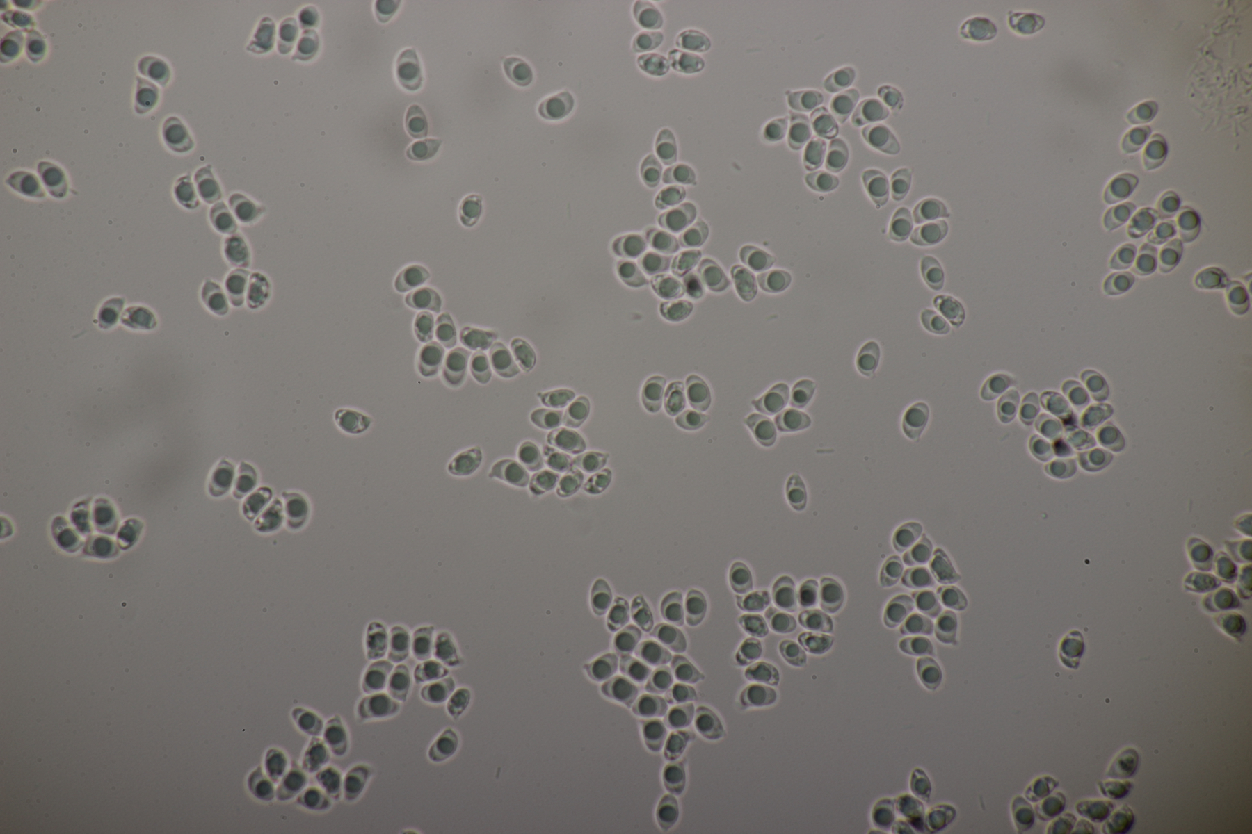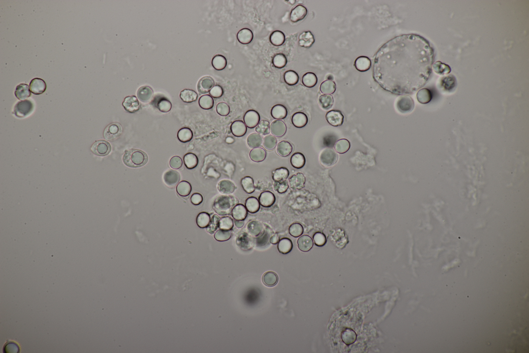 5. Nochmal die weiße Tricholoma/Riecholoma unter Eiche. Geruch eine Mischung aus Dosenspargelgeruch und süßlicher Komponete. Sporengröße (6.5+-0.5) µm x (4.0+-0.4) µm, Q=1.6+-0.2
