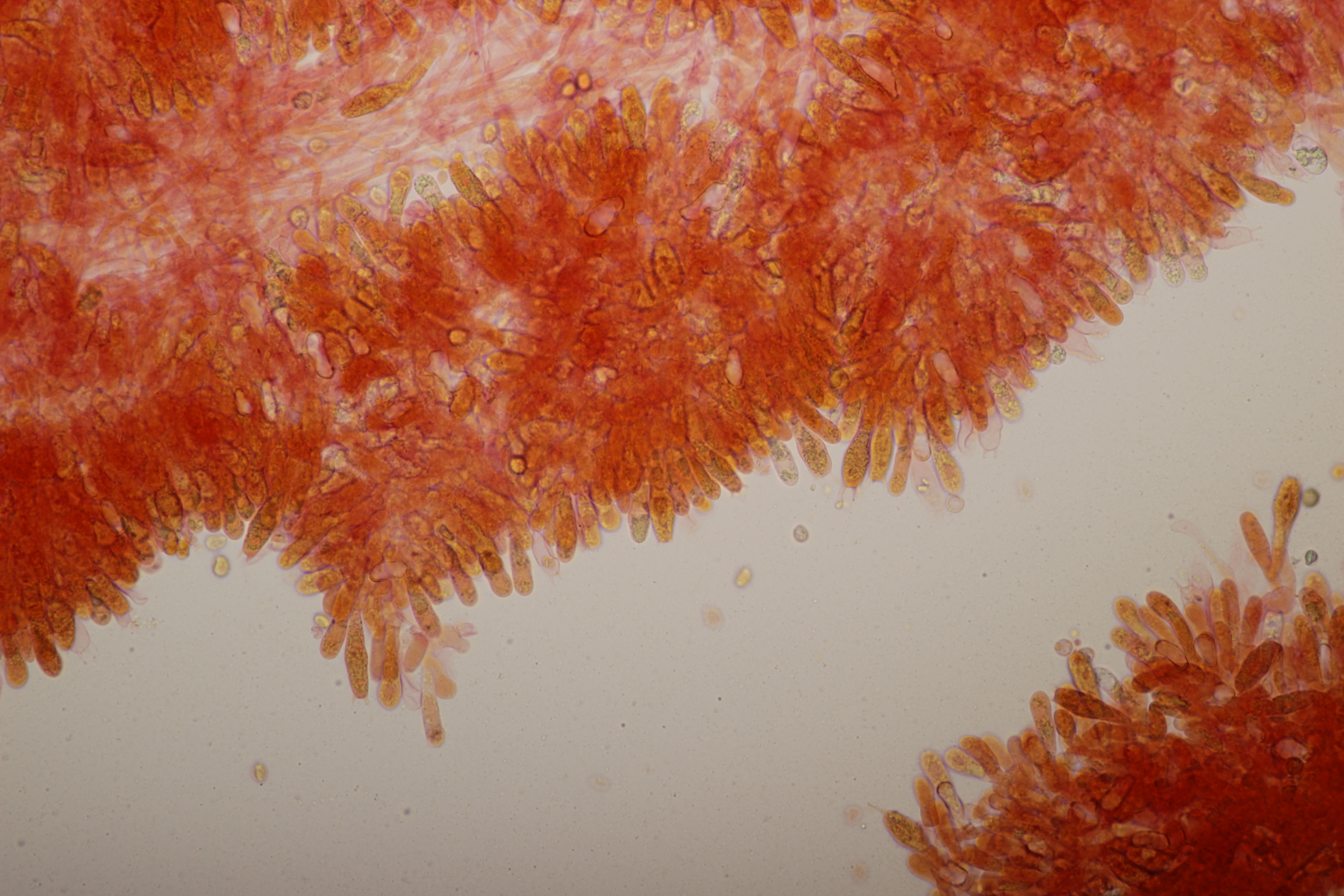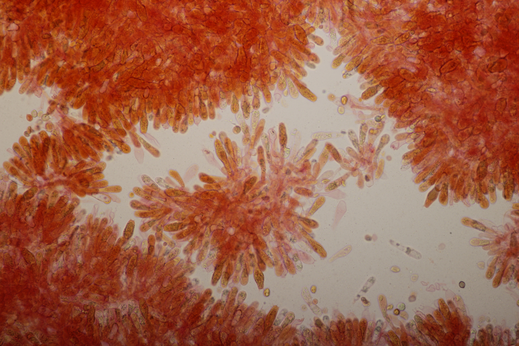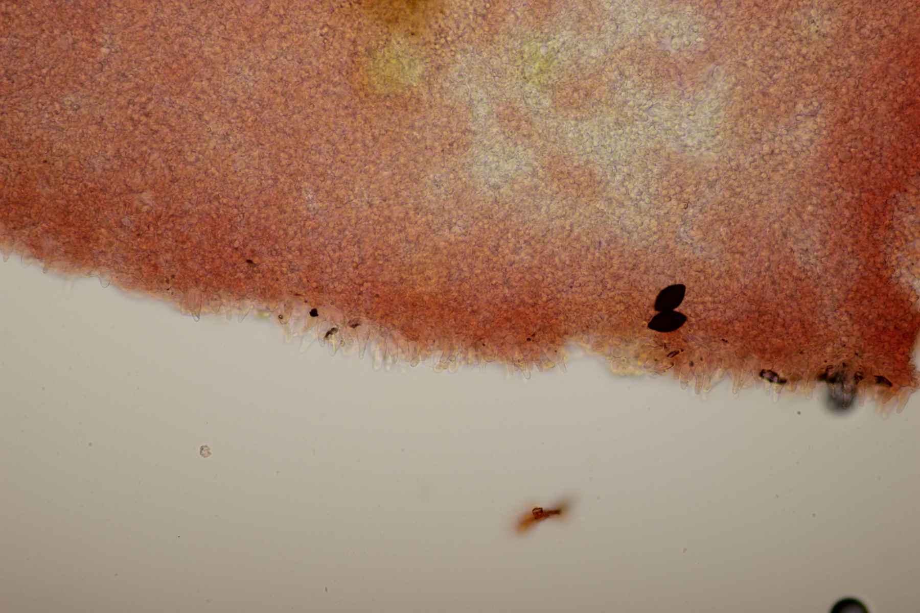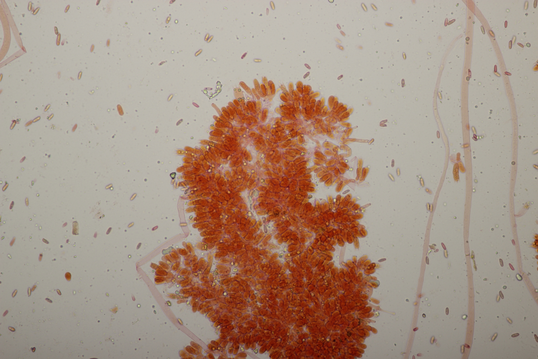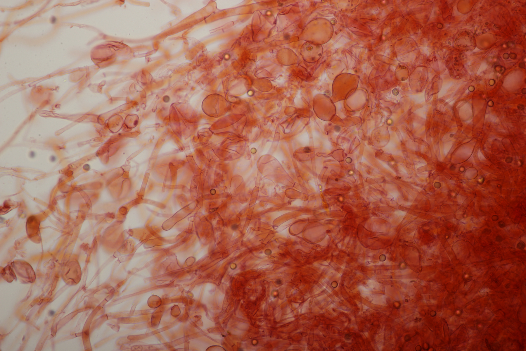 5. Nochmal die weiße Tricholoma/Riecholoma unter Eiche. Geruch eine Mischung aus Dosenspargelgeruch und süßlicher Komponete. Sporengröße (6.5+-0.5) µm x (4.0+-0.4) µm, Q=1.6+-0.2
