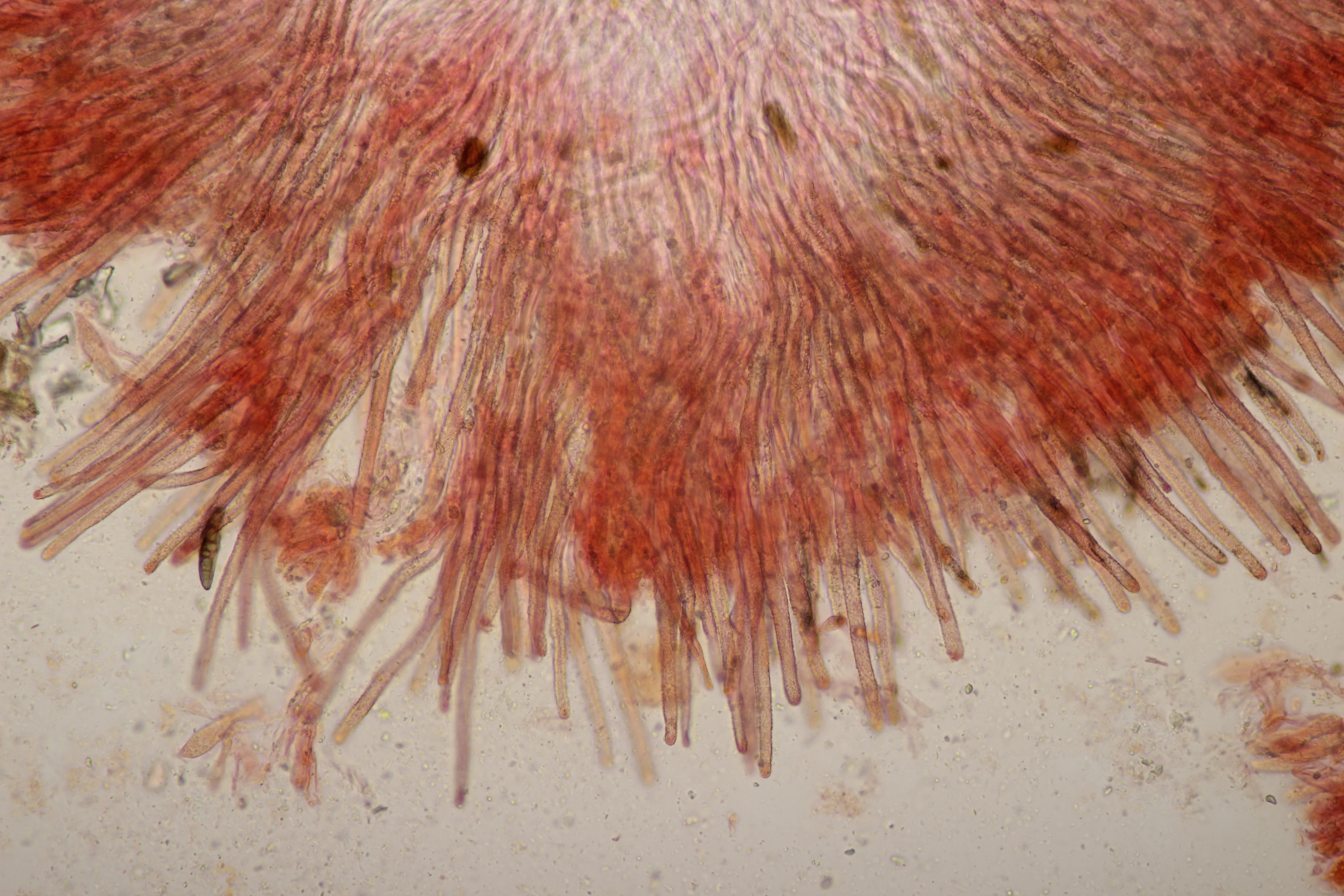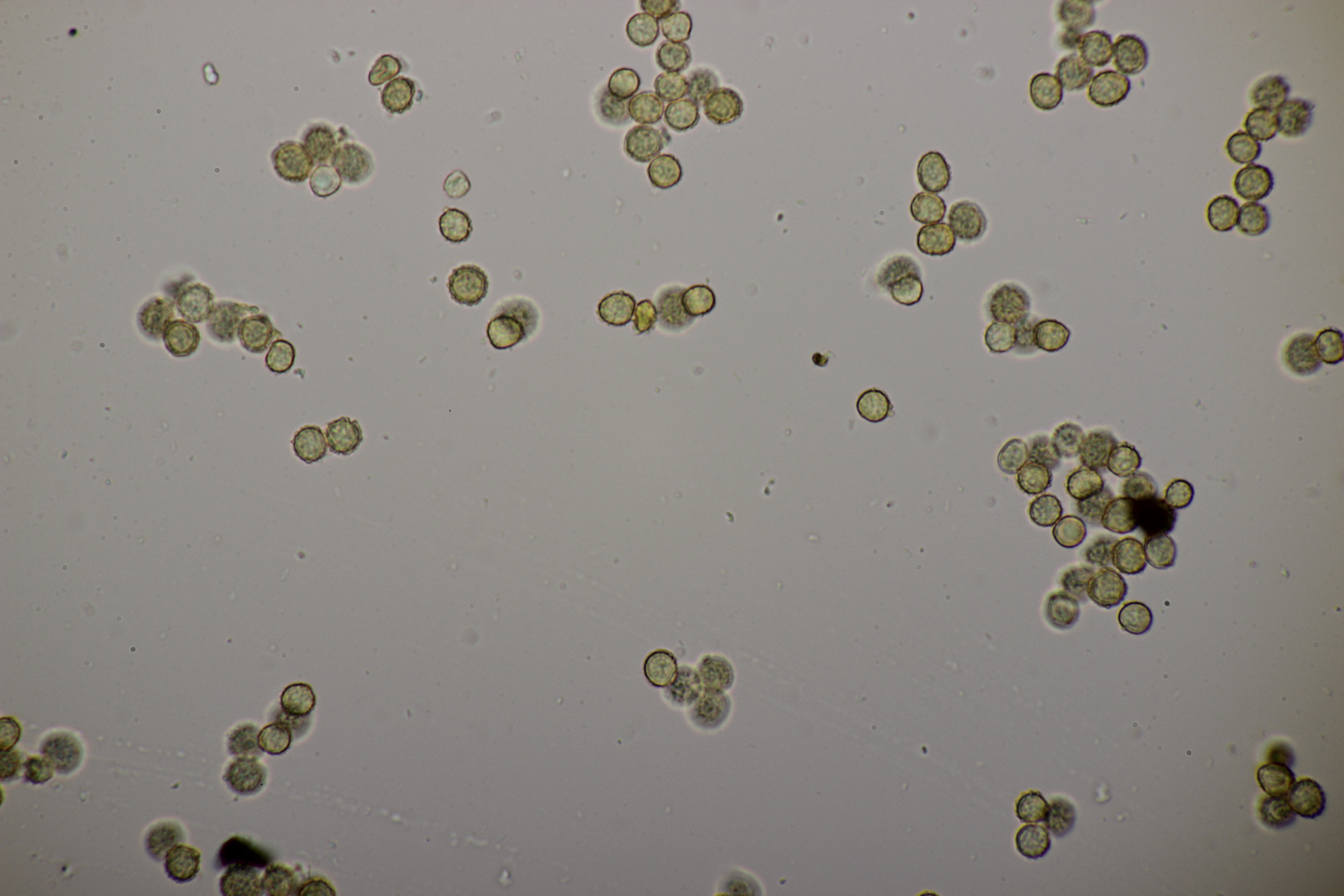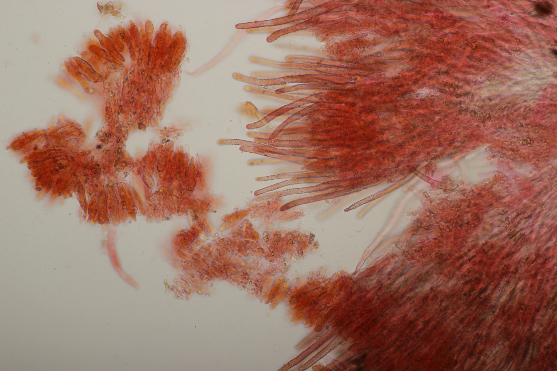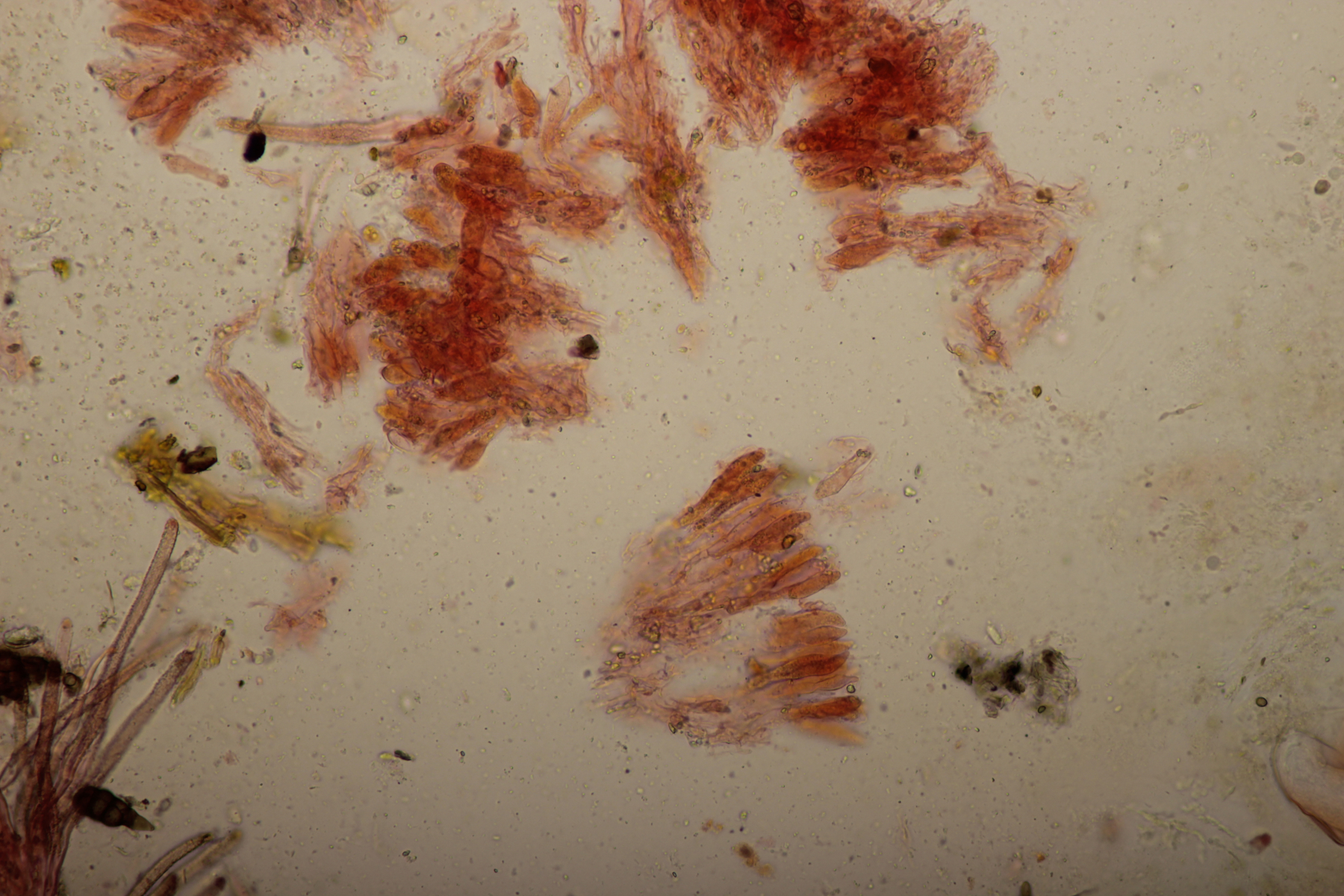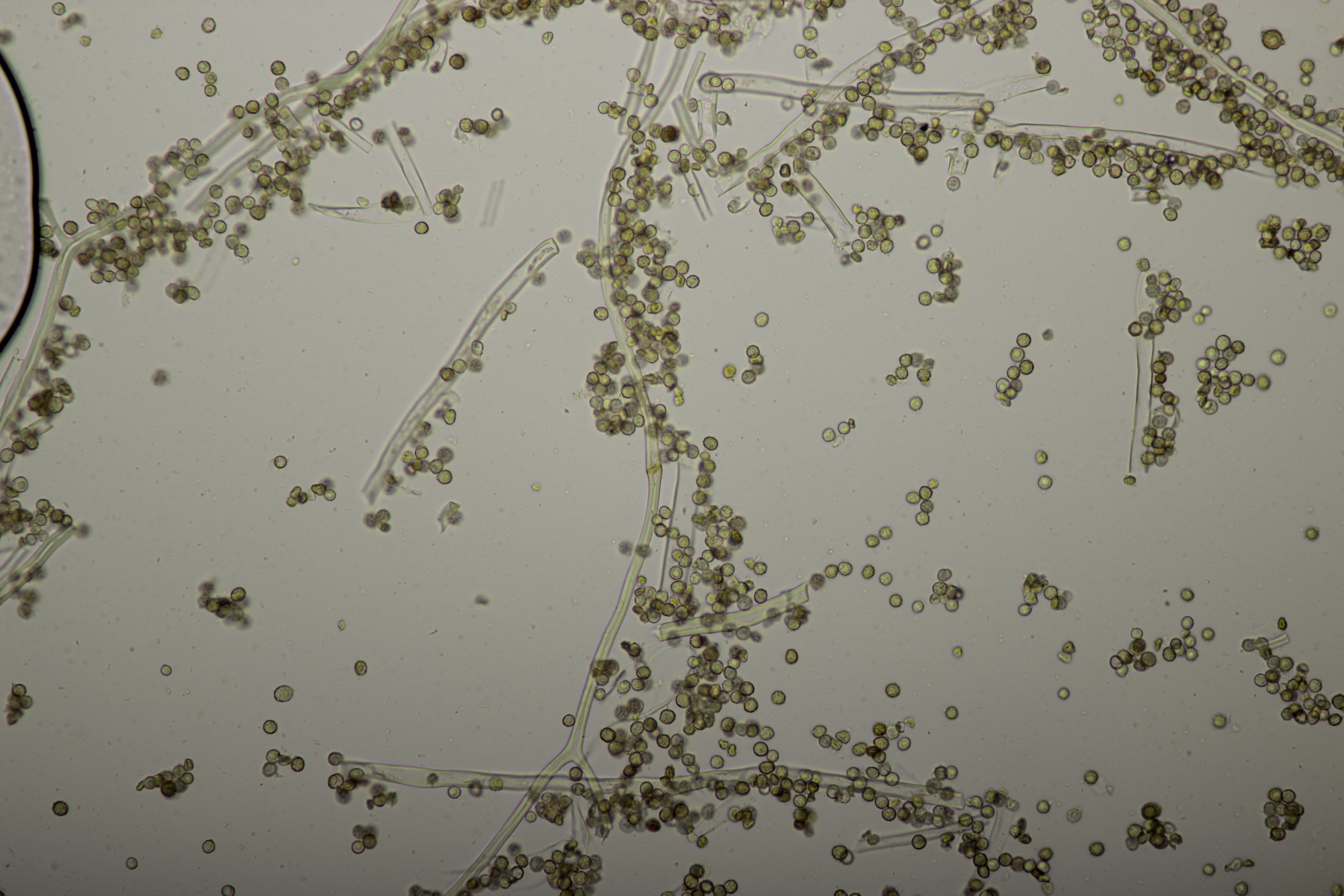 1. Geoglossum elongatum. Zunächst war ich irritiert, daß die Sporen im Abwurf alle ihre Septen verloren hatten. Dann hat Karl mich aber aufgeklärt, daß das ein Charakteristikum von von G. fallax und G. elongatum ist. Mit Sporenlängen im Bereich von 60-70 µm war G. fallax dann rasch ausgeschlossen.