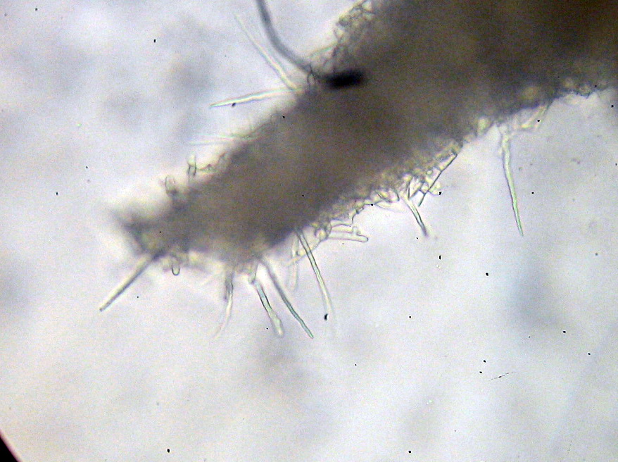 Haare: 55-60µ, dickwandig, kantig verbogen mit 1-2 Septen