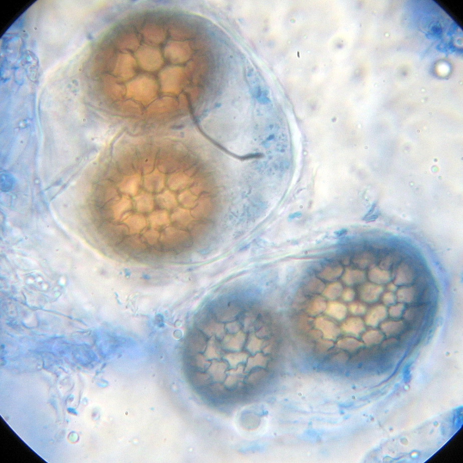 Sporen: fast rund,35 x 30µ in 3-sporigen Asci.
