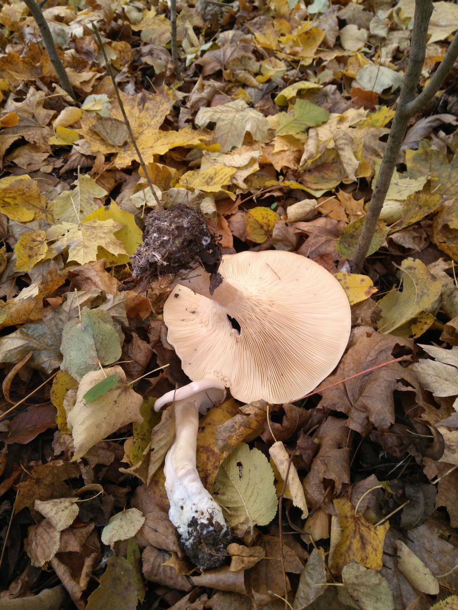 Statt Hebeloma hätte ich noch Cortinarius im Angebot. Mit der spiegeligen Hutoberseite und der Lamellenfarbe vielleicht auch nicht so abwegig.