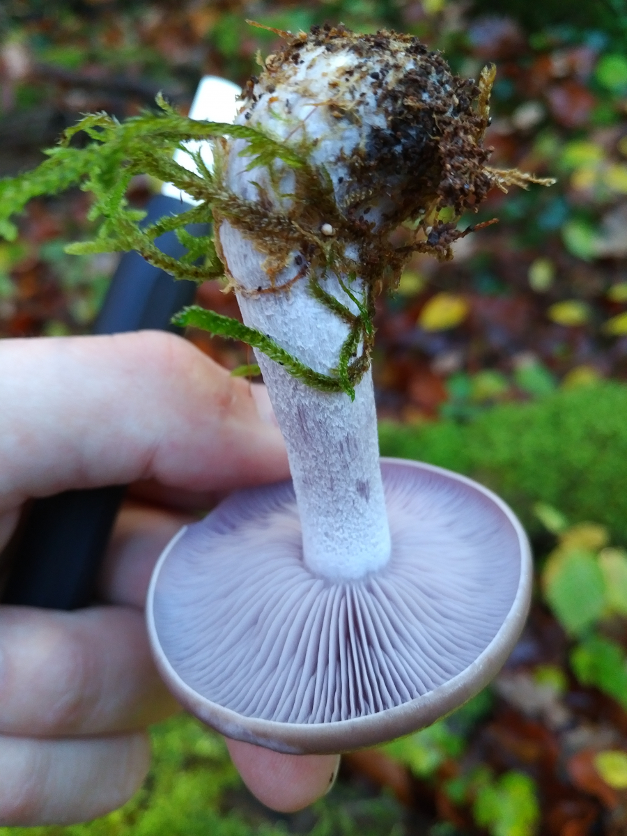 Bei Maronen hab ich auch schon welche auf holzstämme gefunden nicht oft aber manchmal passiert sowas. Sieht schon nach violetter Rötelritterling aus. Wie war der Geruch?