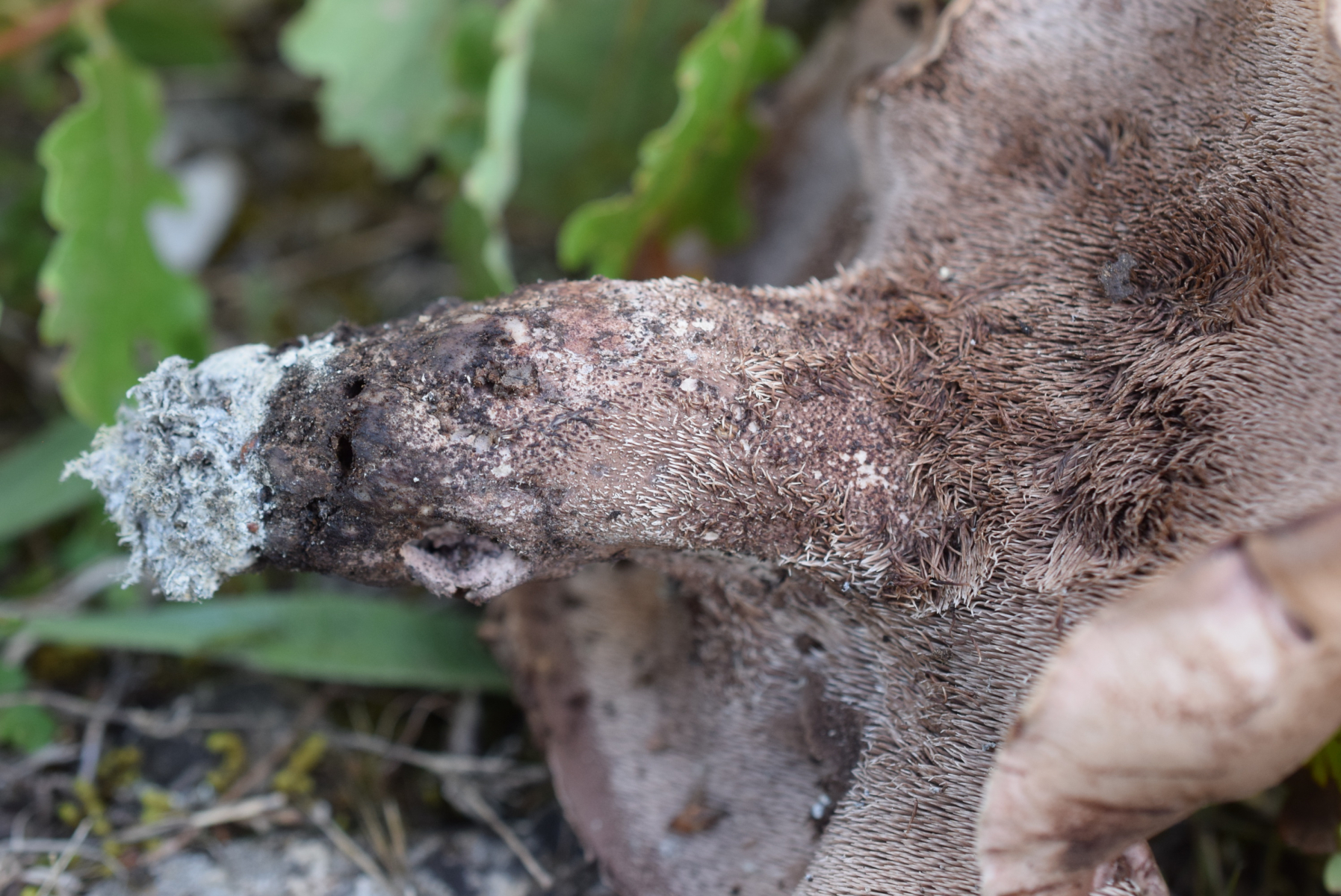 Dein Braunsporstacheling erinnert mich an unsere ungeklärten Funde aus Griechenland, die waren auch viel glatthütiger als ich es von den mir von hier bekannten Arten (Kiefern- und Fichtenhabichtspilz) kannte.