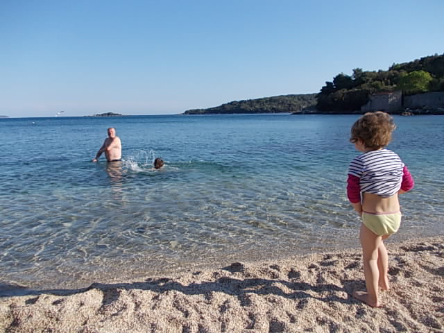 Meine Neffe ( Tochter von Schwester) und ich alleine an Strand Molunat nähe Dubrovnik . Tagestemperatur über 20 Grad , Meeres ?. an Anfang Kalt aber nach 1 Minute kein Problem