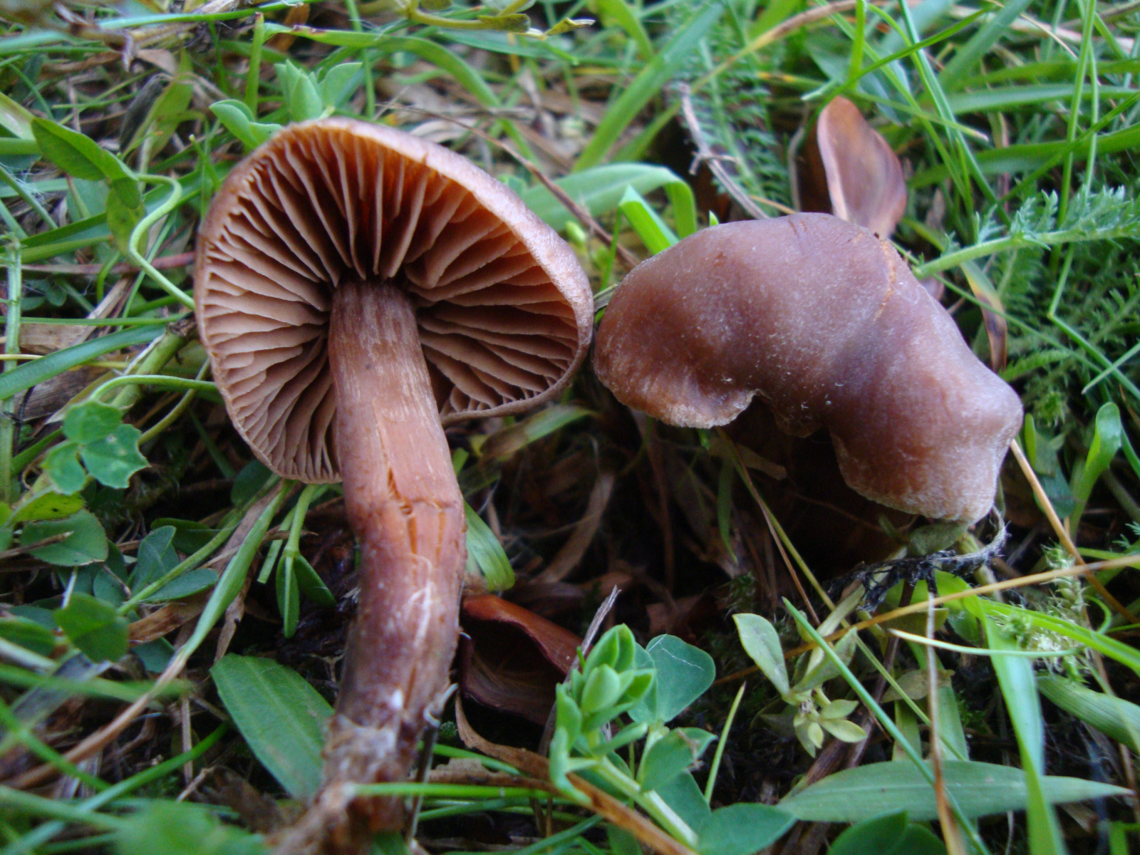 Die ersten 4 Bilder waren eine andere Gruppe als die letzten beiden, allerdings vermute ich stark, dass es sich um die gleiche Art handelt. Die Hüte waren recht klein, vielleicht 3 cm im Durchmesser, das Sporenpulver hellbraun (festgestellt bei den Exemplaren von den letzten beiden Bildern). Auf dem letzten Bild sieht man deutlich die Reste einer Cortina. Auch beim linken Pilz im ersten Bild hängt noch ein Härchen, das wohl mal zu einer Cortina gehört hat.
