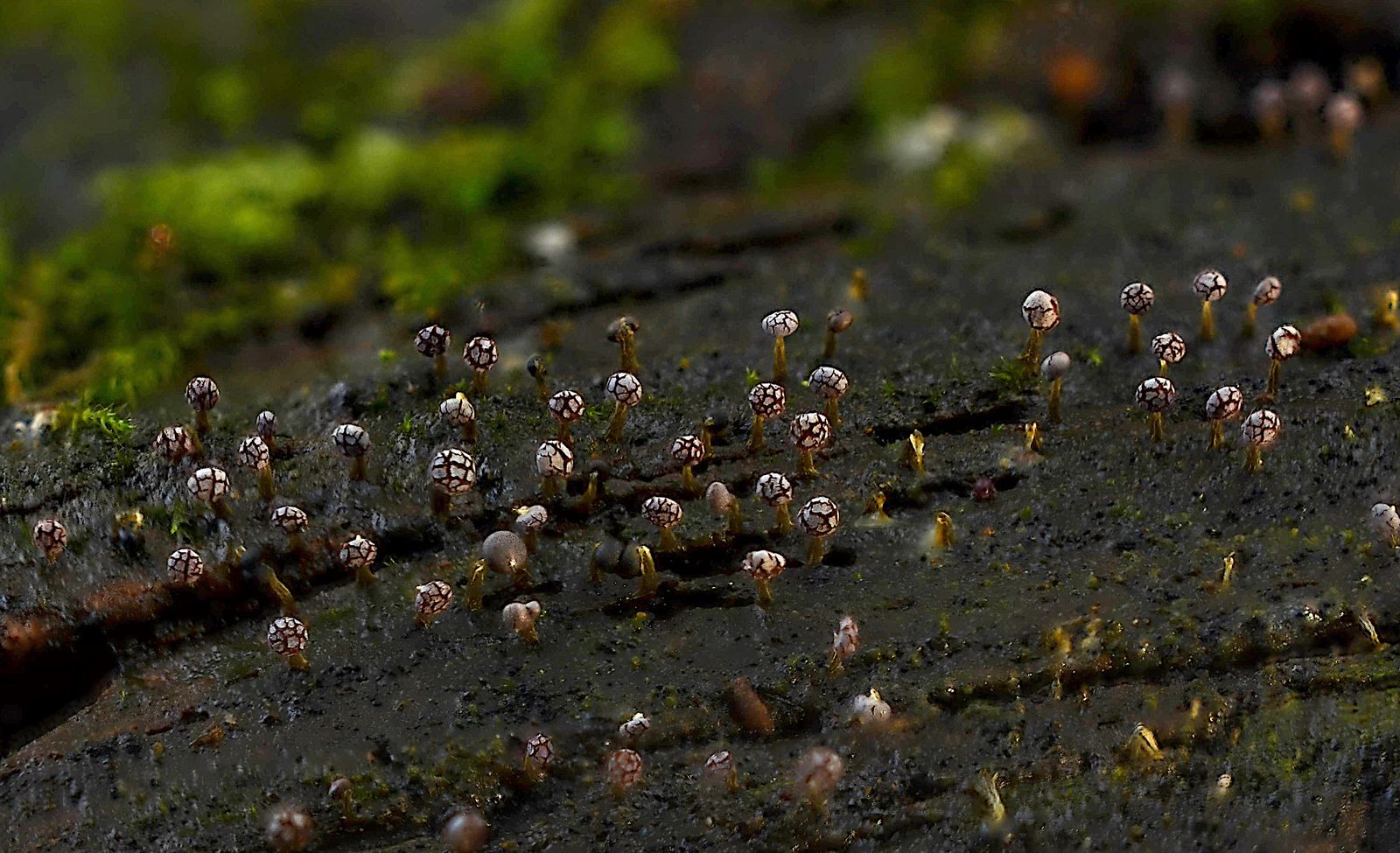 so ohne weitere Info und Mikroskop glaube ich sagen zu können dass man schon mal sagen könnte: Myxomyzeten, und aufgrund der Kalkeinlagerungen in der Peridie: Ordnung Physarales.