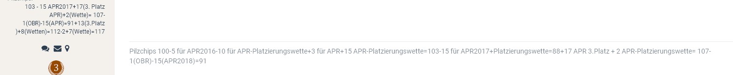 Platzierungswette (Welche APRler bleiben für Platz 1-6 übrig, wer steigt auf´s Podest? Wettabgabe bevor Platz 10 verkündet wird.)