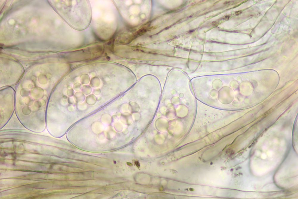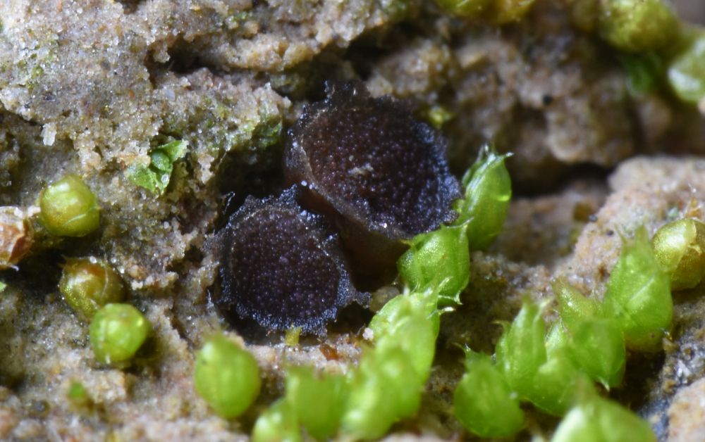 Markant sind die globosen Sporen und das irreguläre Retikulum auf diesen. Sporendurchmesser 8,5- 10 µm und der große Lipidtropfen war 6- 6,5 (-7) µm. Insgesamt drei Apothecien wuchsen auf nacktem Lehm mit Barbula unguiculata, Phascum cuspidatum, Homalothecium lutescens und einem Cerastium juv.