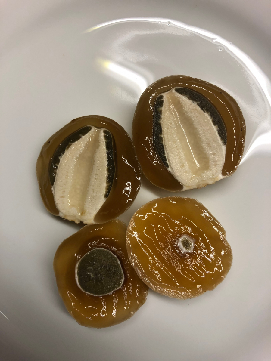 2. Schneidet man ein etwas reiferes Hexenei auf geschieht folgendes, was mich sehr überraschte: