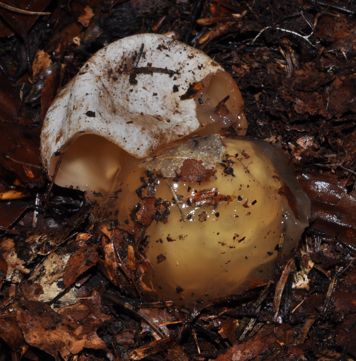 Natürlich aufgeplatzte Peridie, in diesem Stadium sieht das Hexenei wirklich wie ein aufgeschlagenes Hühnerei aus!