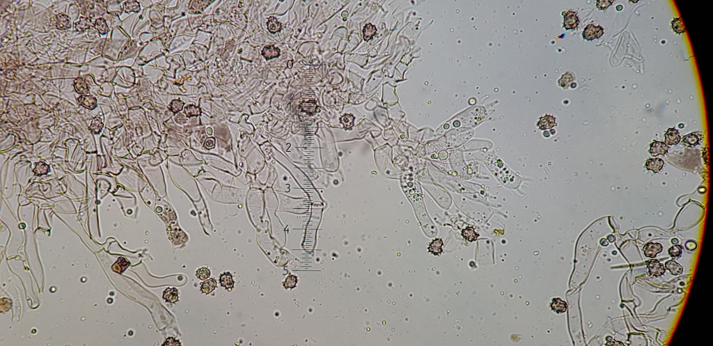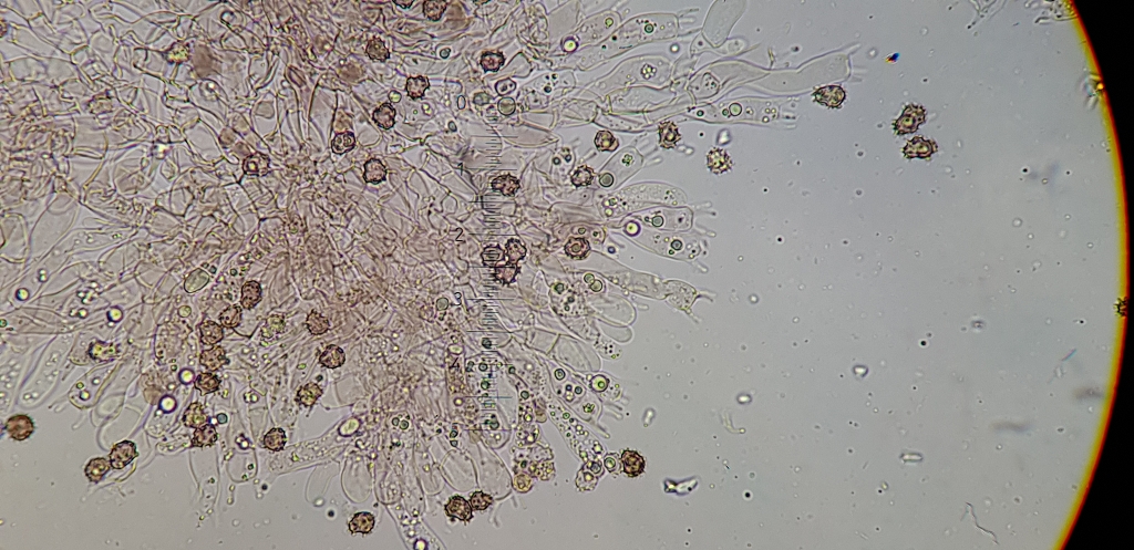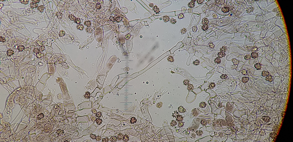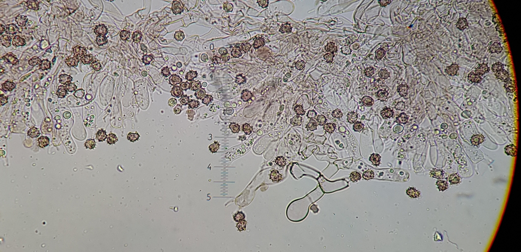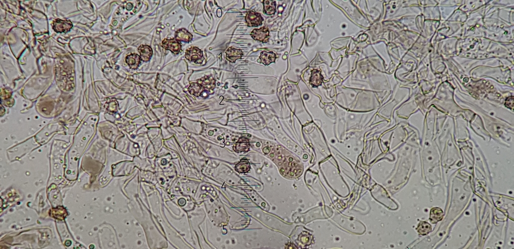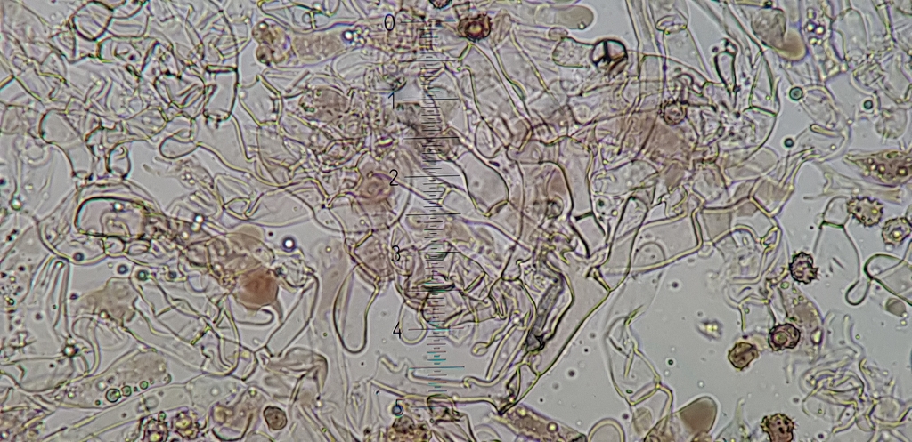 Hyphen sind mit Schnallen und im subhymenium kurzzelligund teilweise aufgeblasen.