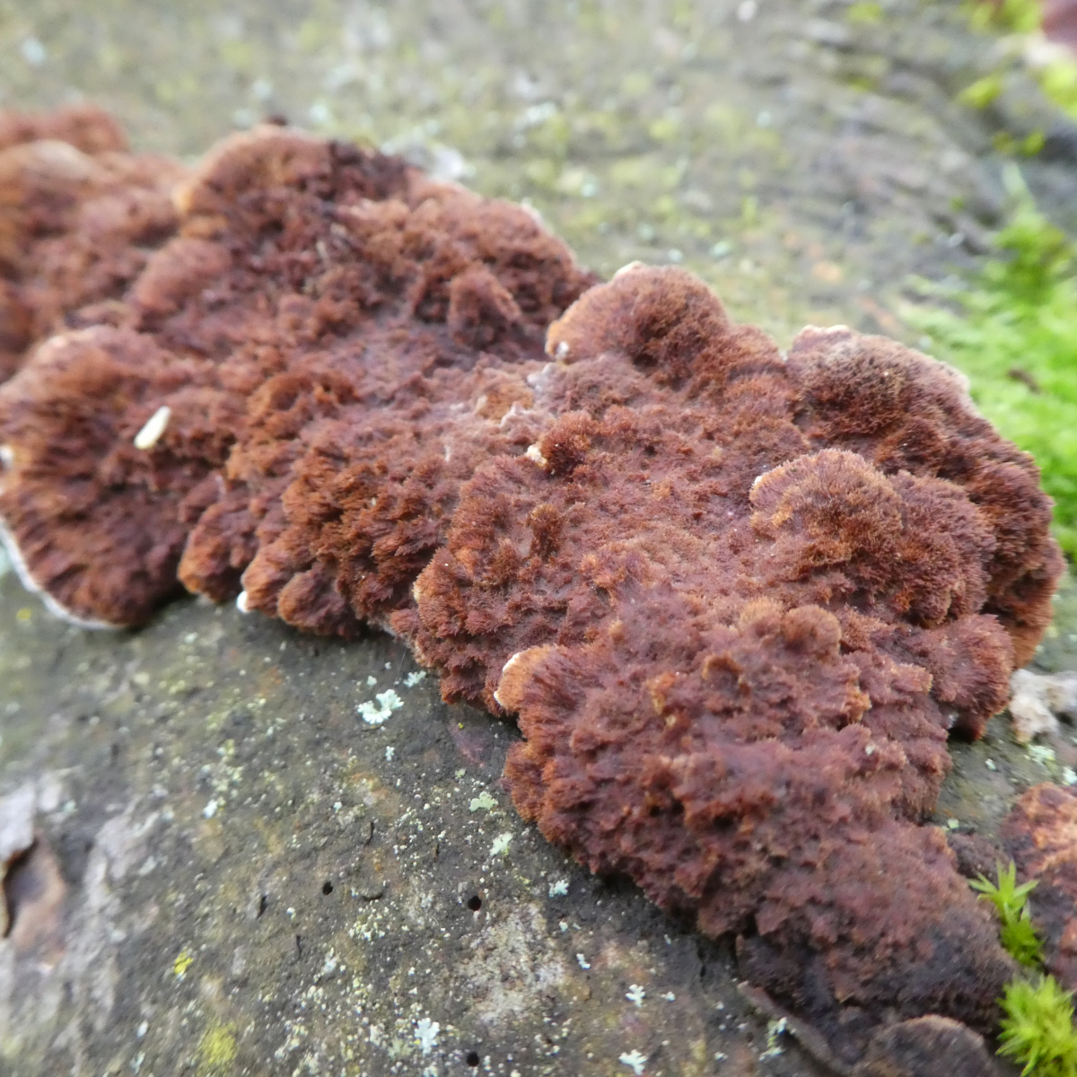 Rindenpilze sehe ich mir ja eher selten an, diesen hier fand ich aber dann doch ziemlich auffällig.