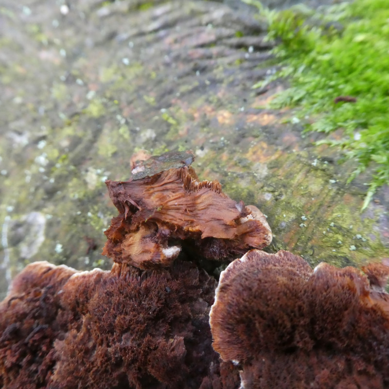 Rindenpilze sehe ich mir ja eher selten an, diesen hier fand ich aber dann doch ziemlich auffällig.
