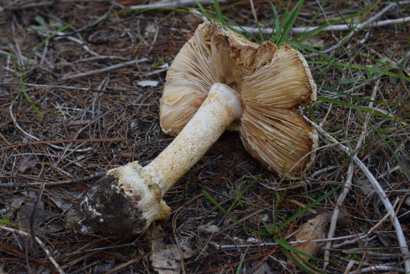 Mein heutige Fund von A. ovoidea , schwach braune Volva . Hab extra eine mit stark braune Volva gesucht aber nicht gefunden , es war zu Trocken und wenig Pilze .