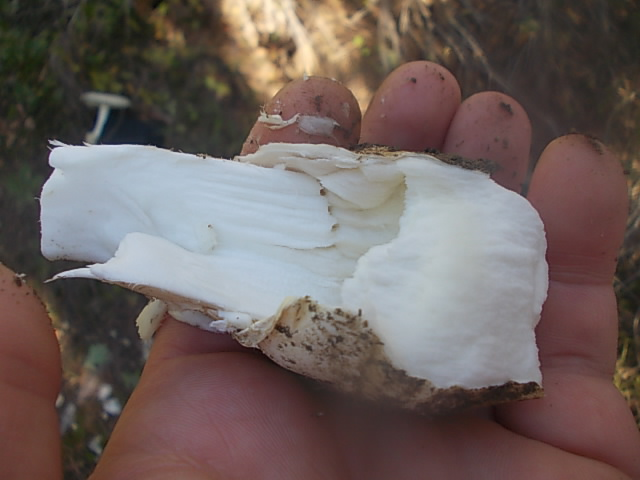 Zusätzliches Merkmal (aber tricky, wie Beli schreibt) ist die Farbgebung der Scheide. Beli beschreibt auch Unterschiede im basalen Stielfleisch.